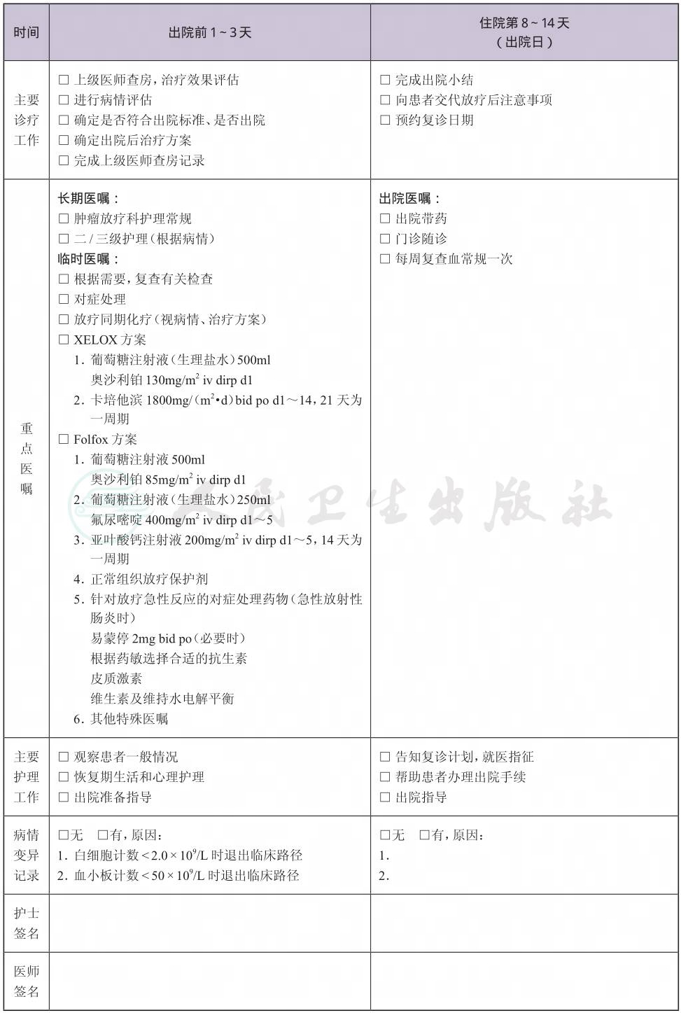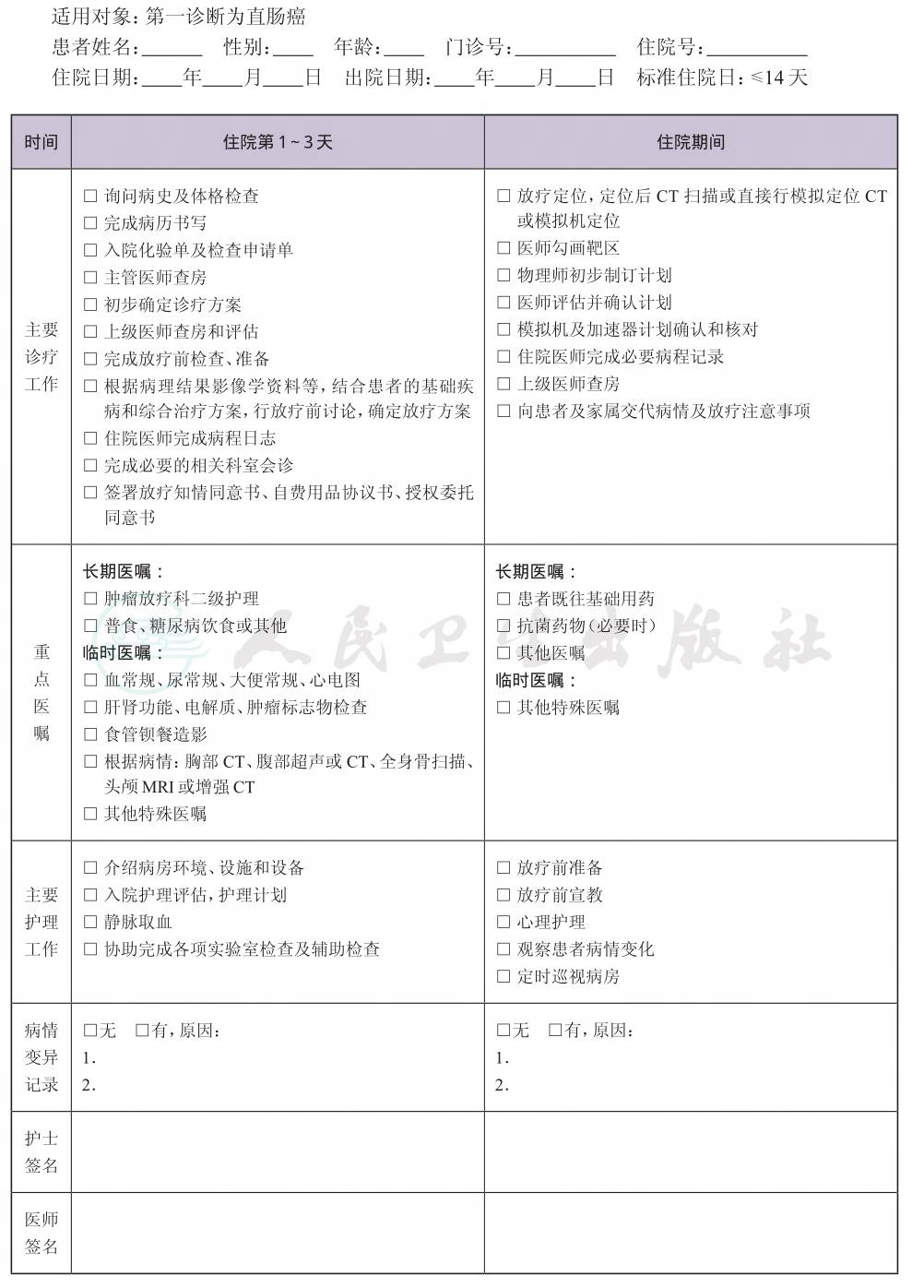 二、 直肠癌放疗临床路径表单