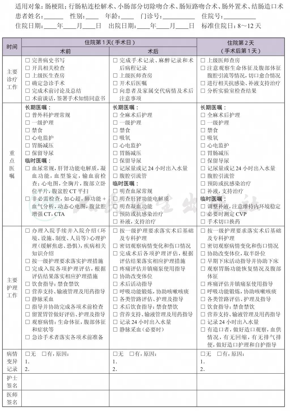 二、 肠梗阻临床路径表单