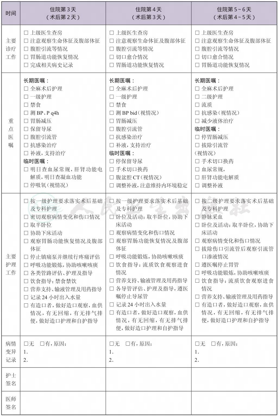 2.注意早期下床活动,注意肛门或造瘘口排气排便情况,胃肠动力恢复情况。