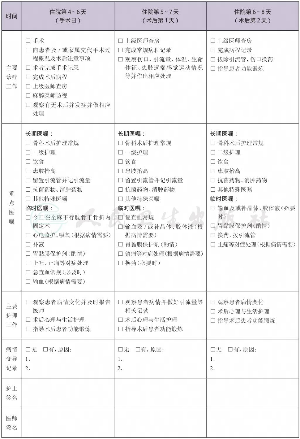 (八) 手术日为入院第4~6天