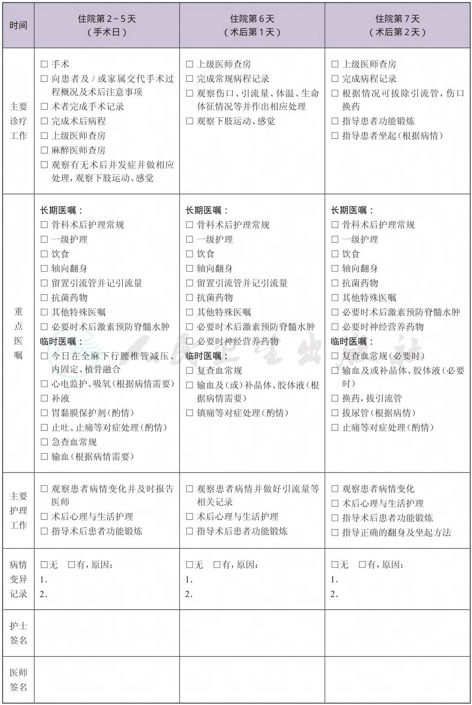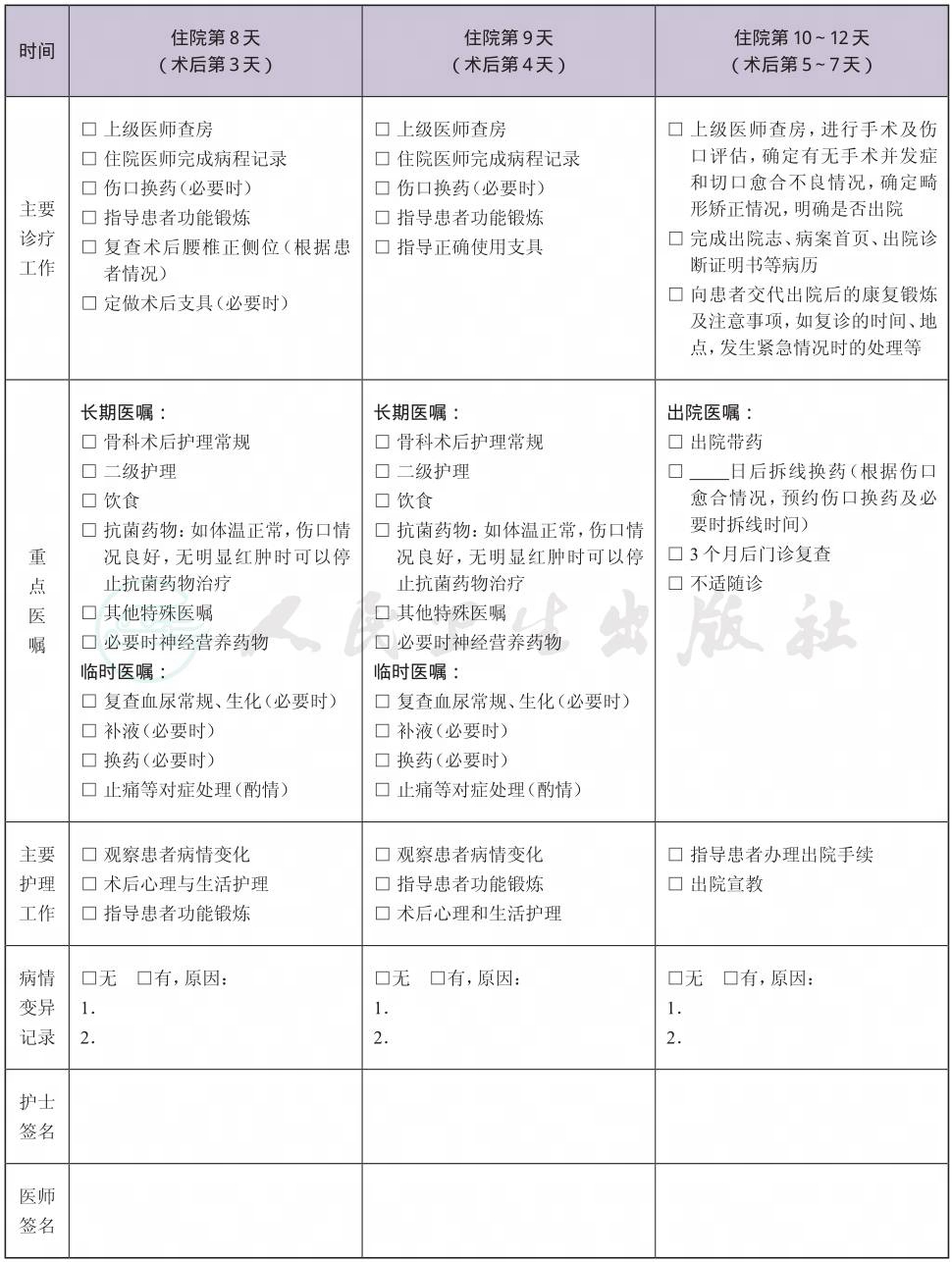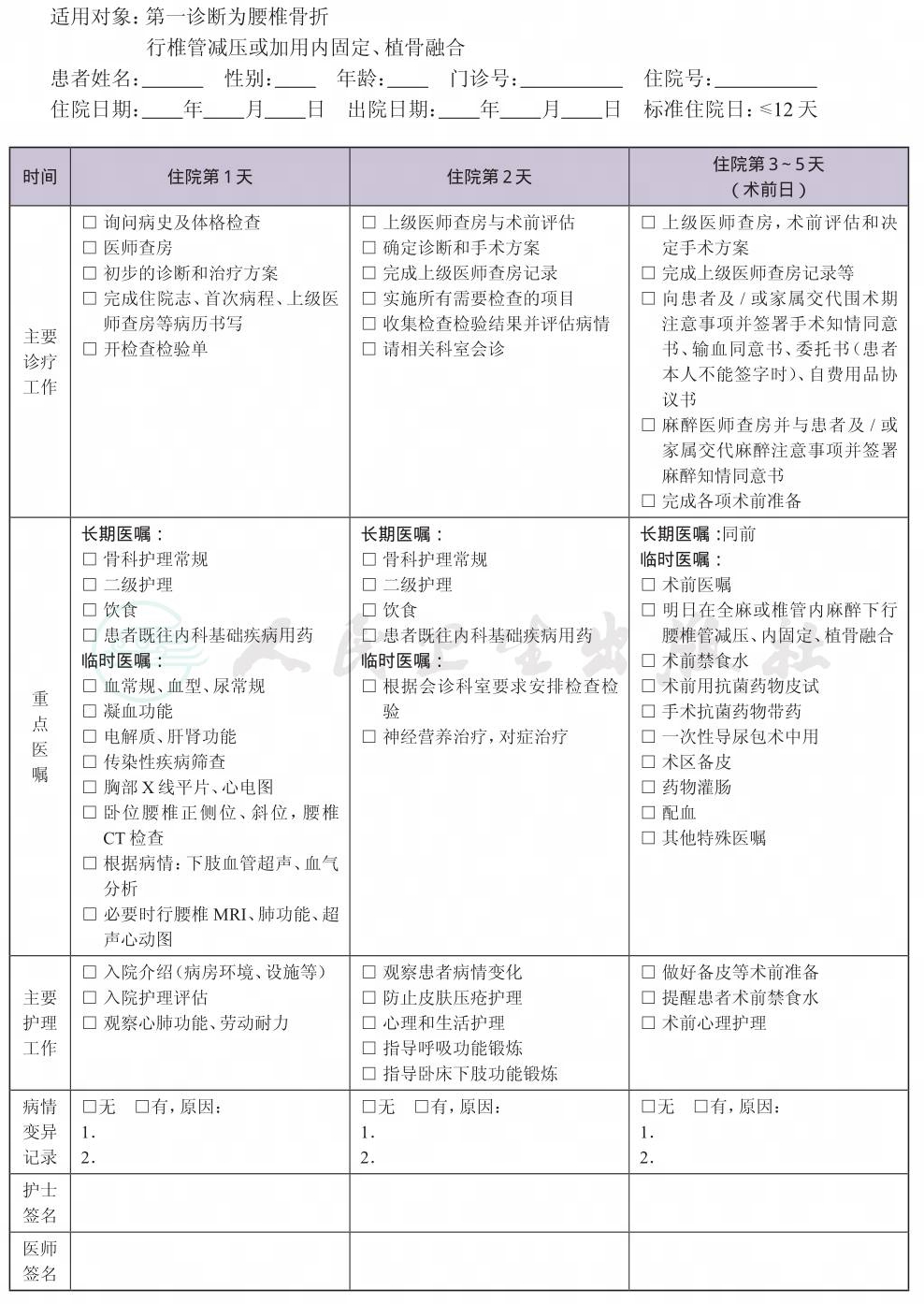 二、 腰椎骨折临床路径表单