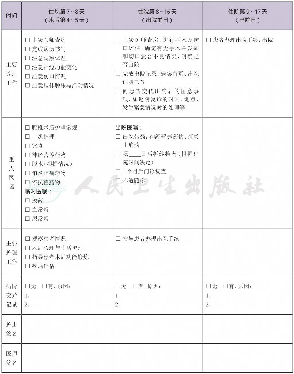 1.围术期并发症 伤口感染、神经血管输尿管损伤、硬膜外血肿、内植物松动等造成住院日延长和费用增加。