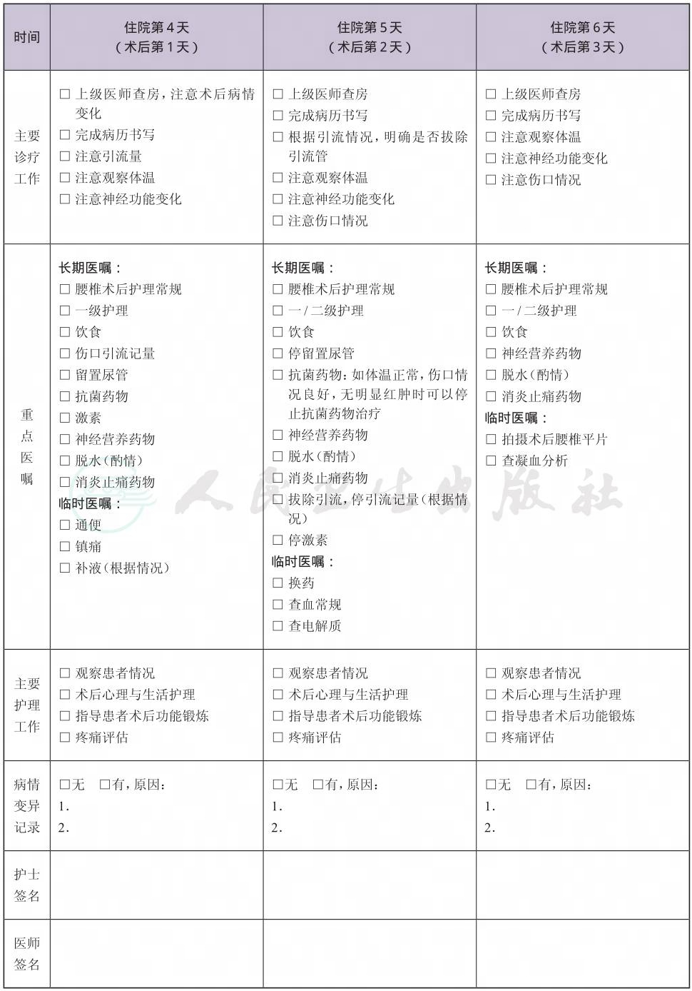 1.必须复查的检查项目 腰椎正侧位片、血常规、凝血功能、电解质。
