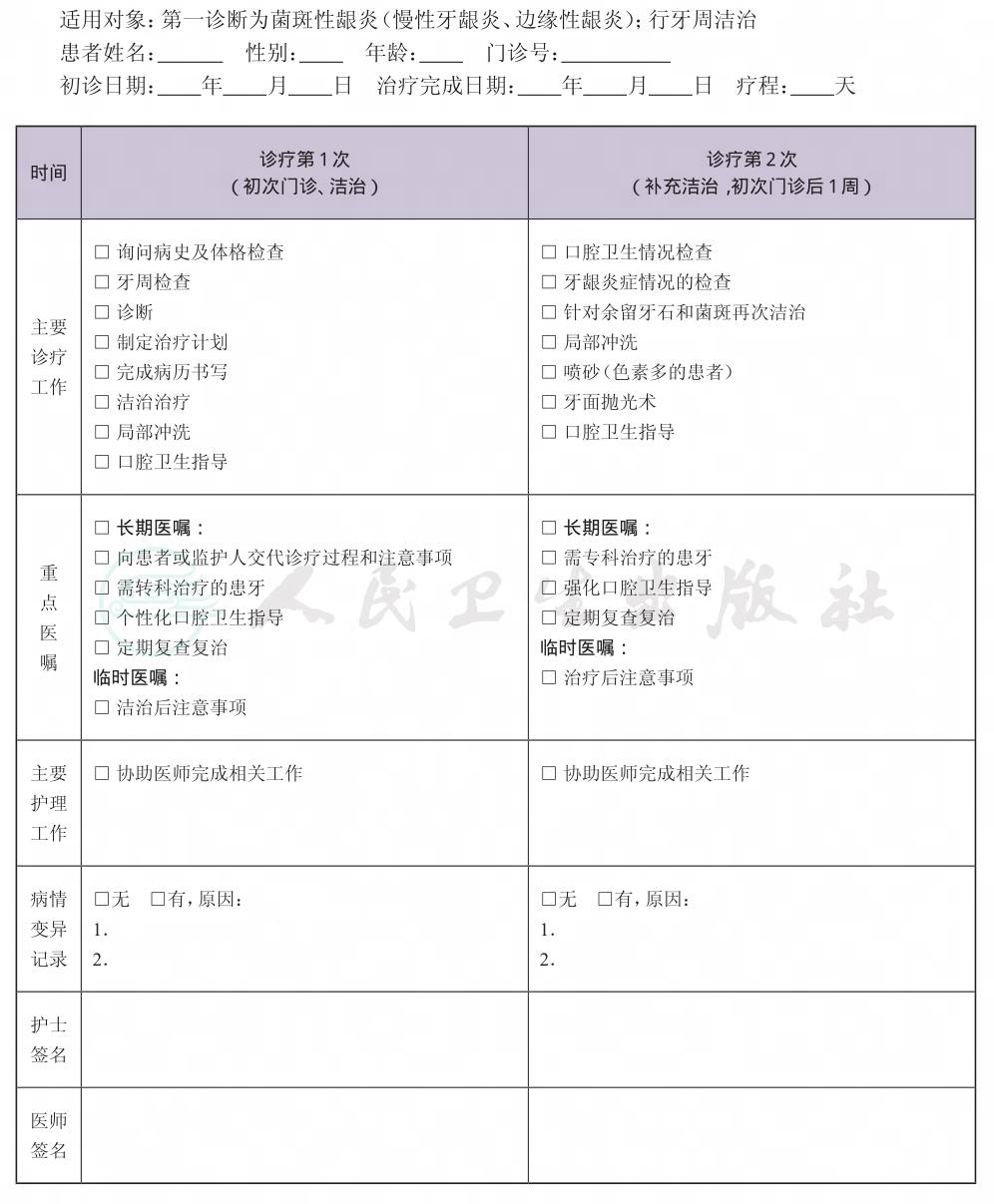 二、 菌斑性龈炎(慢性牙龈炎、边缘性龈炎)行牙周洁治的临床路径表单