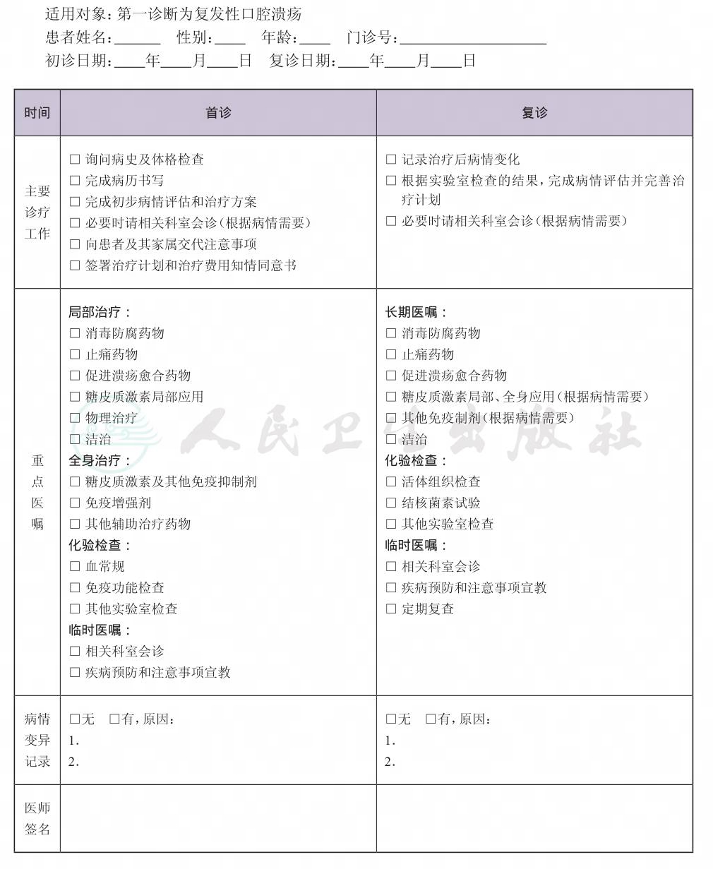 二、 复发性口腔溃疡临床路径表单