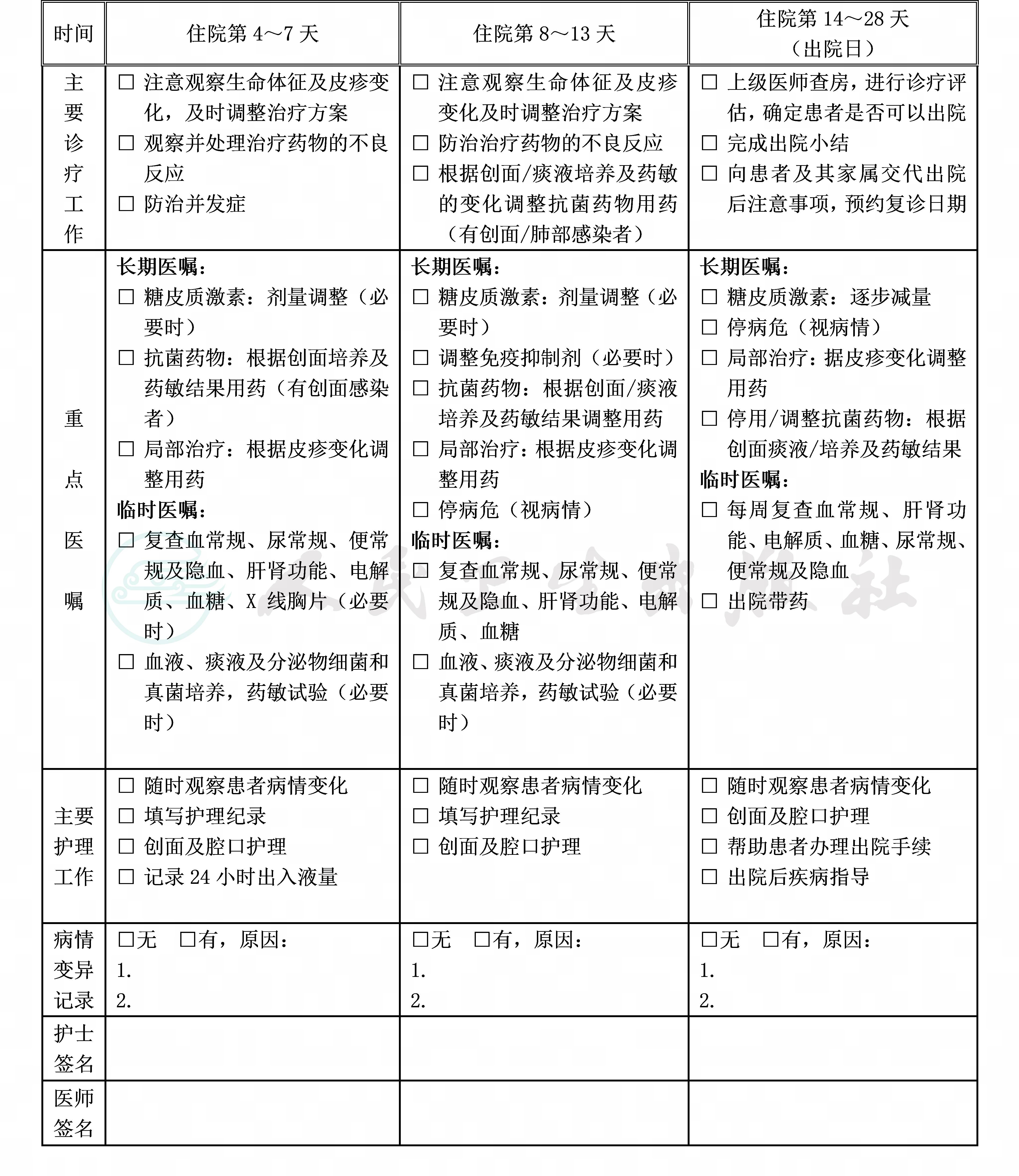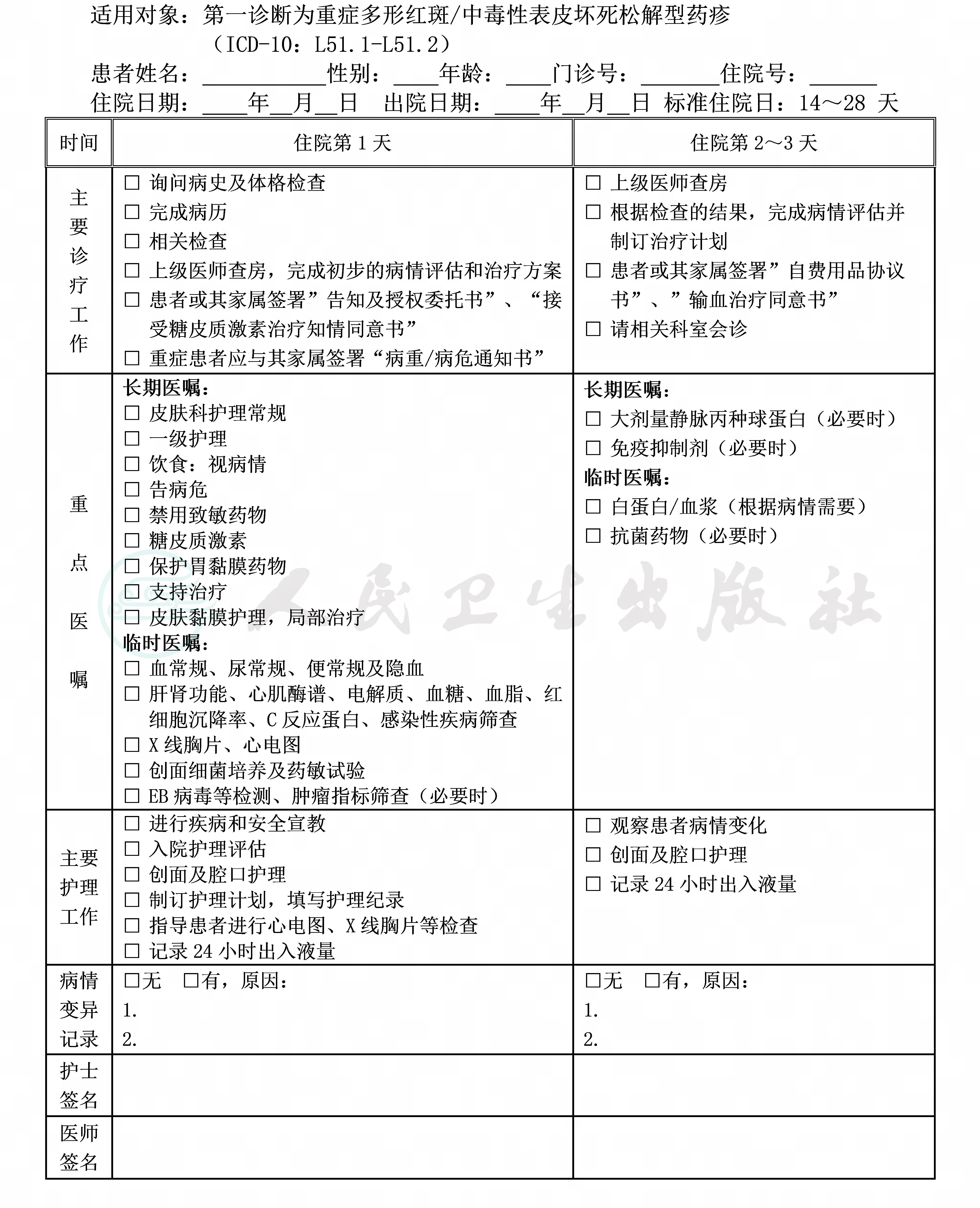 二、重症多形红斑/中毒性表皮坏死松解型药疹临床路径表单