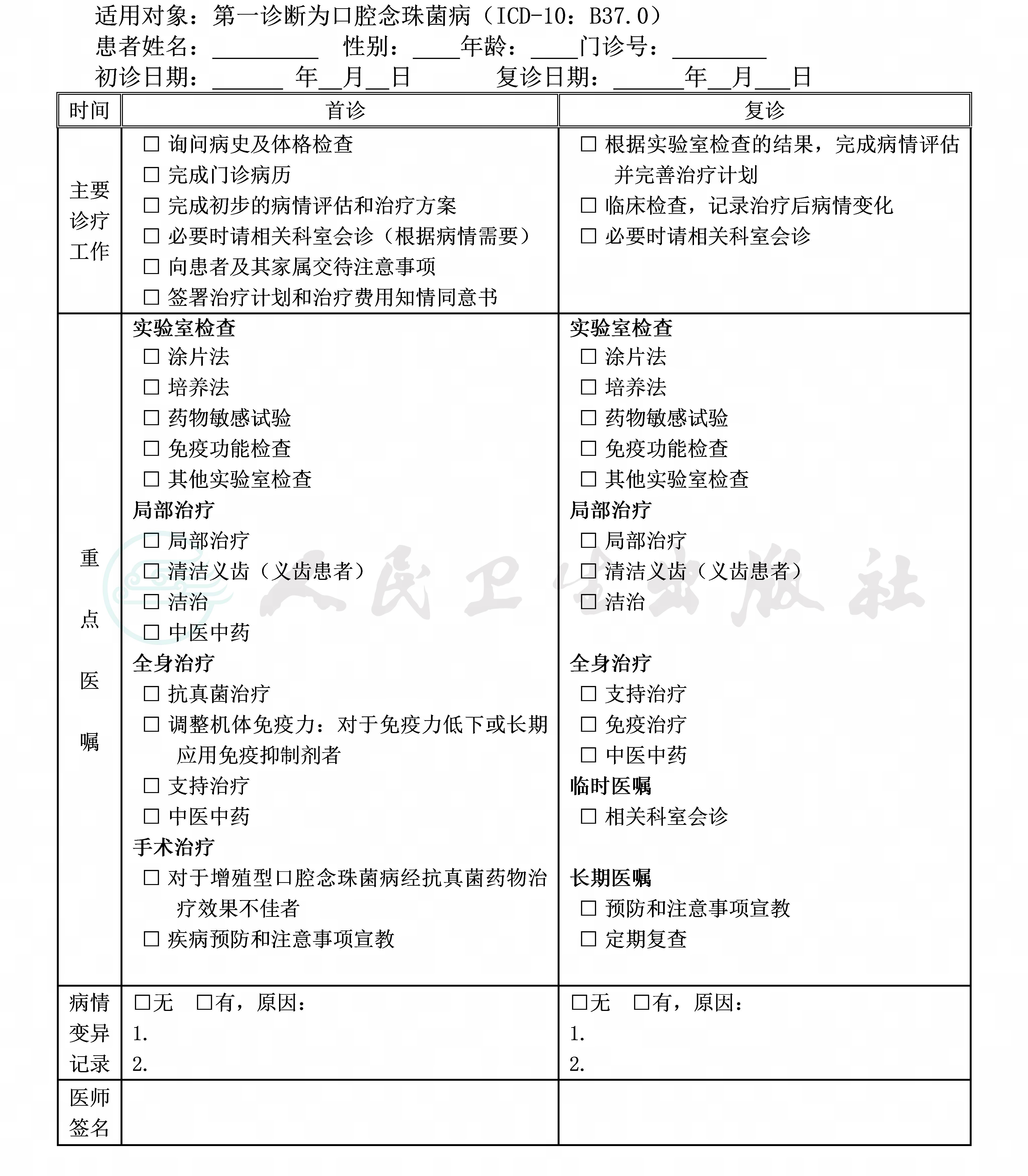 1.第一诊断必须符合ICD-10:B37.0口腔念珠菌病疾病编码。