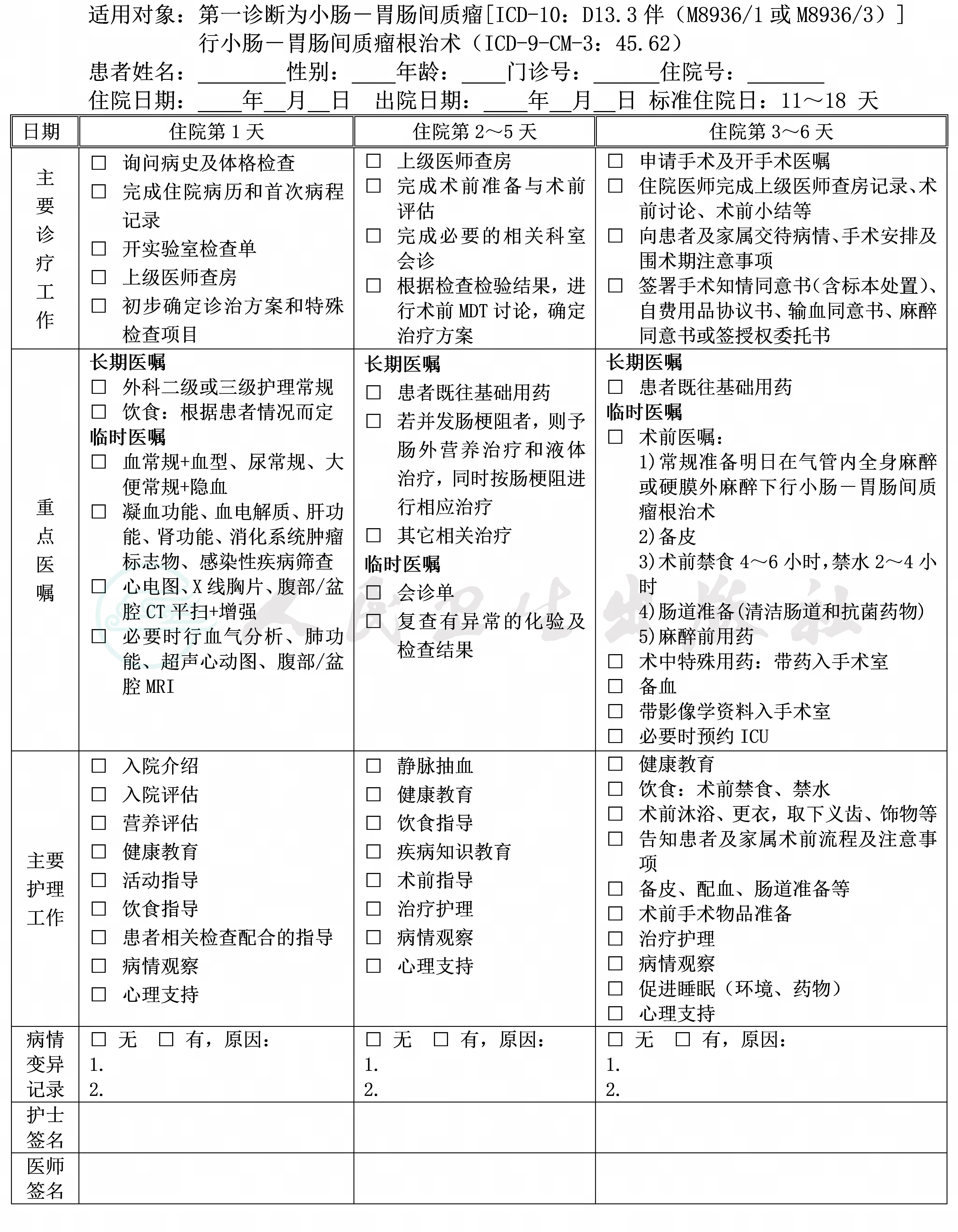 二、小肠-胃肠间质瘤临床路径表单