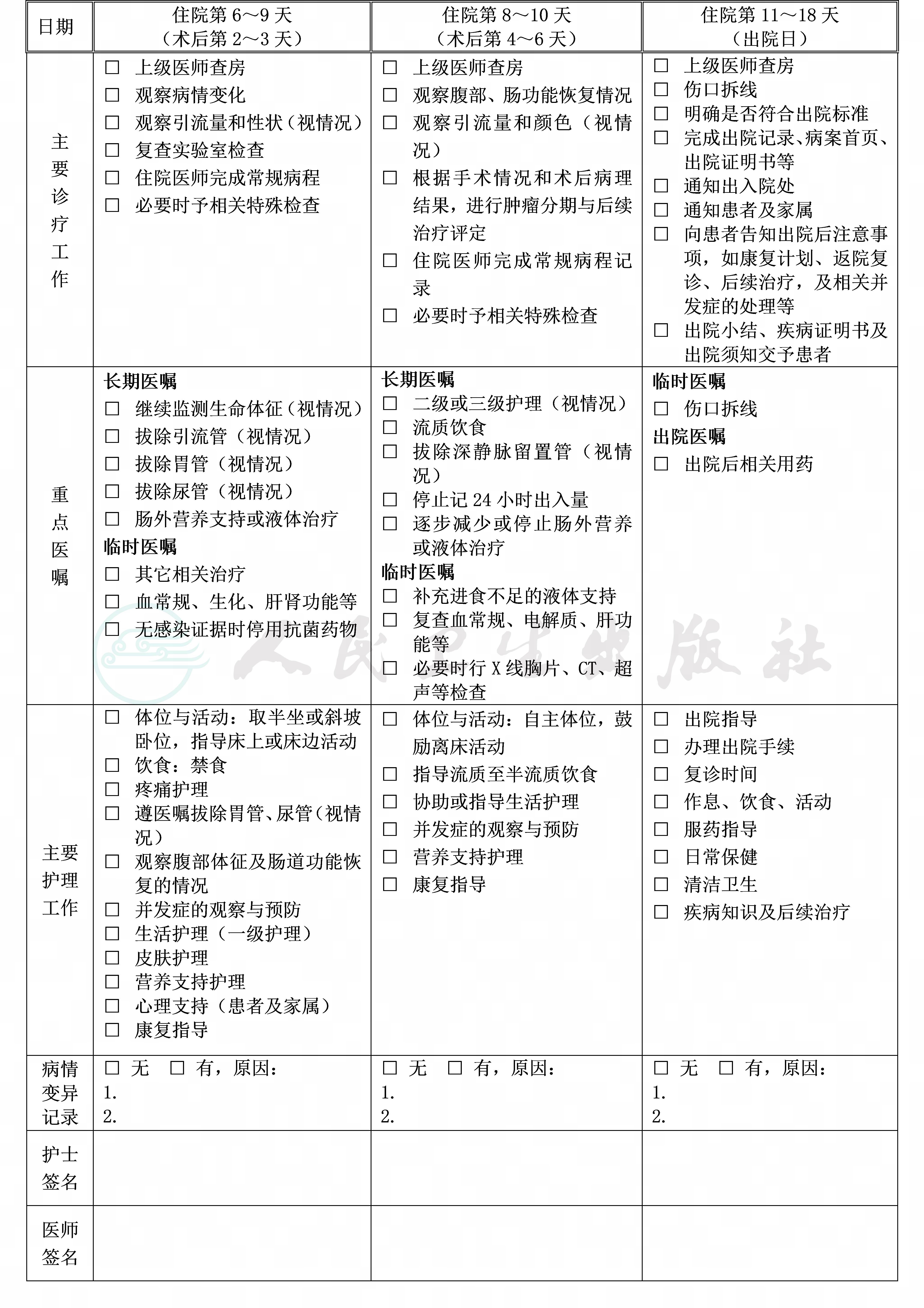 (九)术后住院恢复7~11天