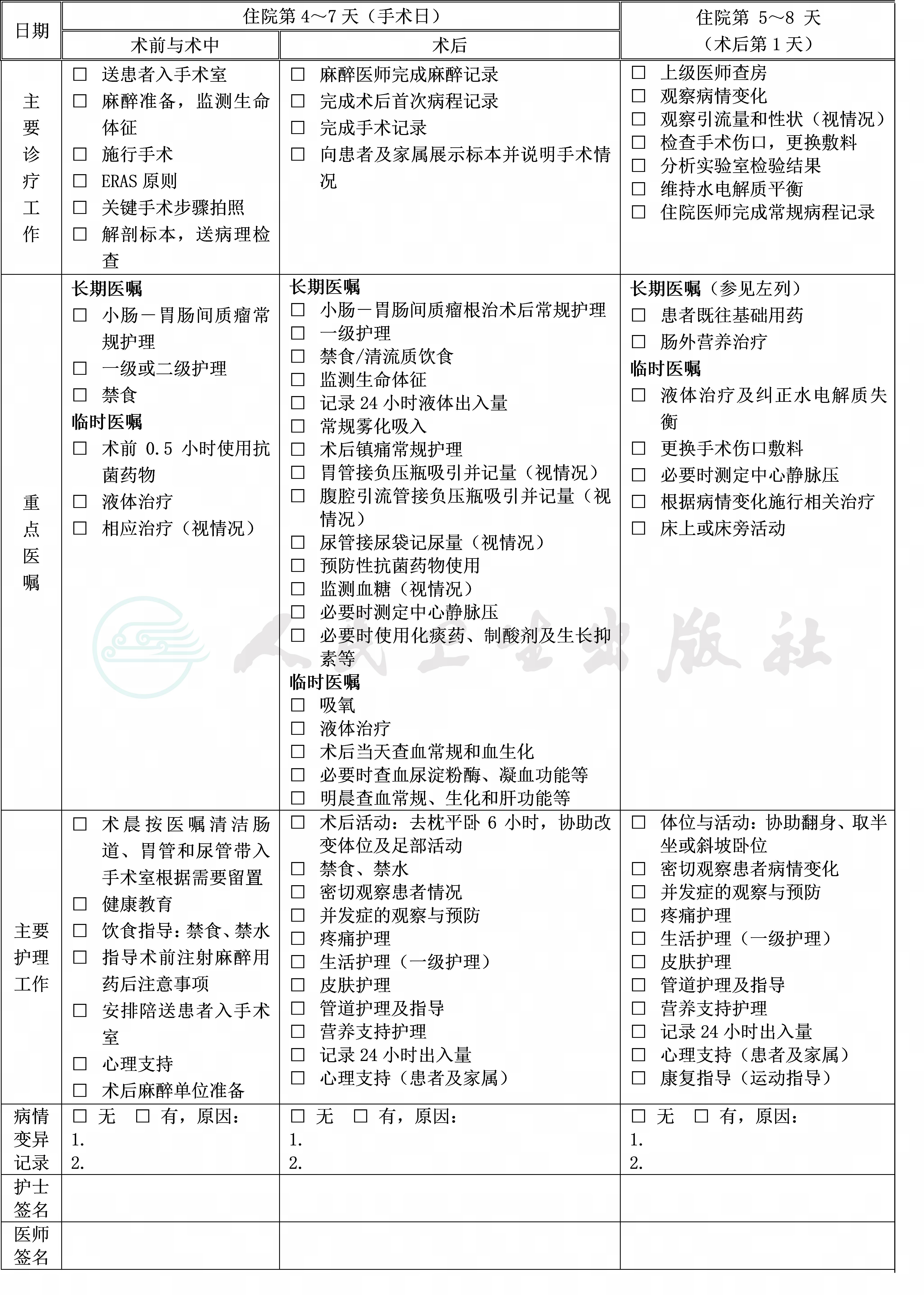 (八)手术日为入院第4~7天