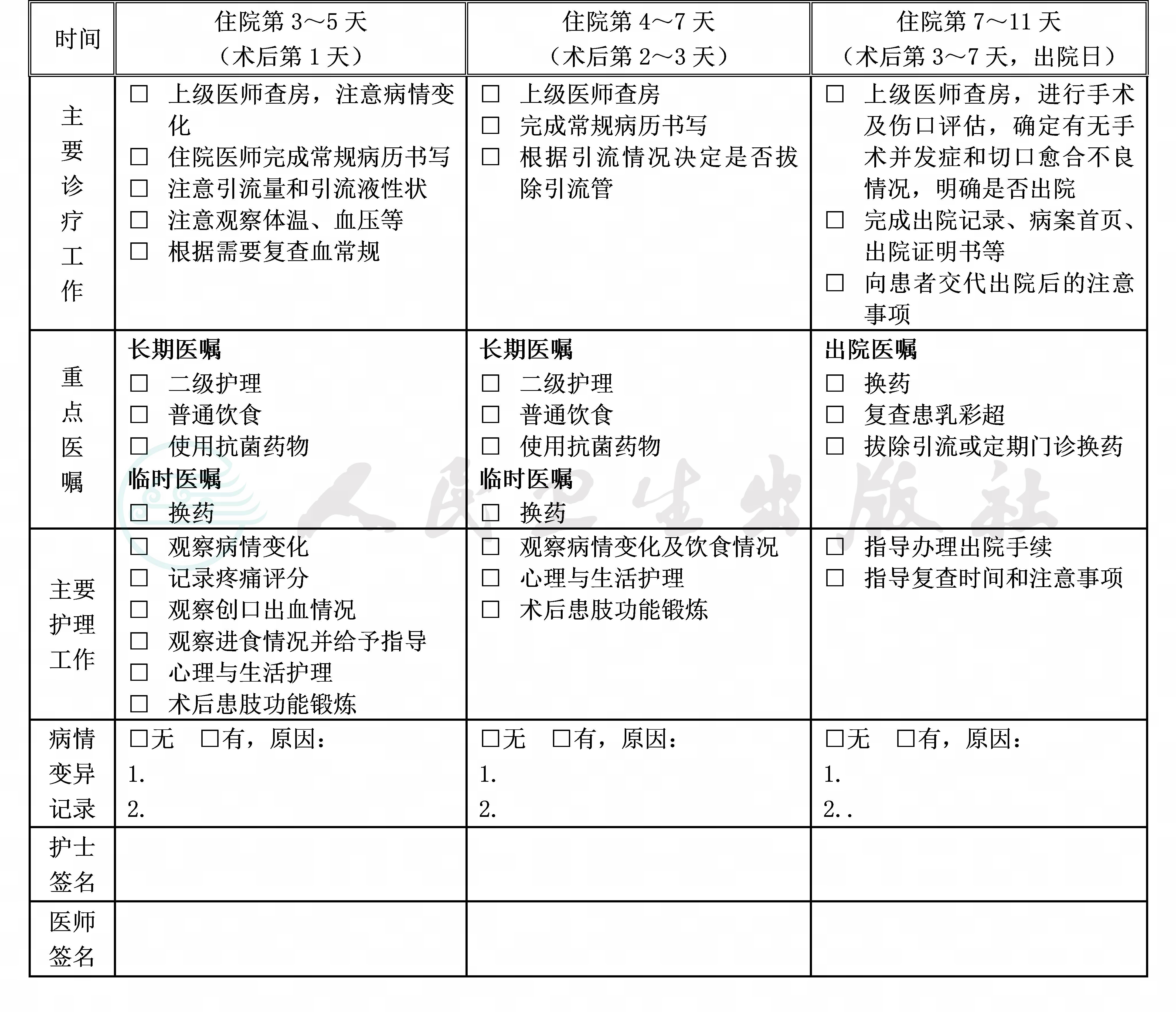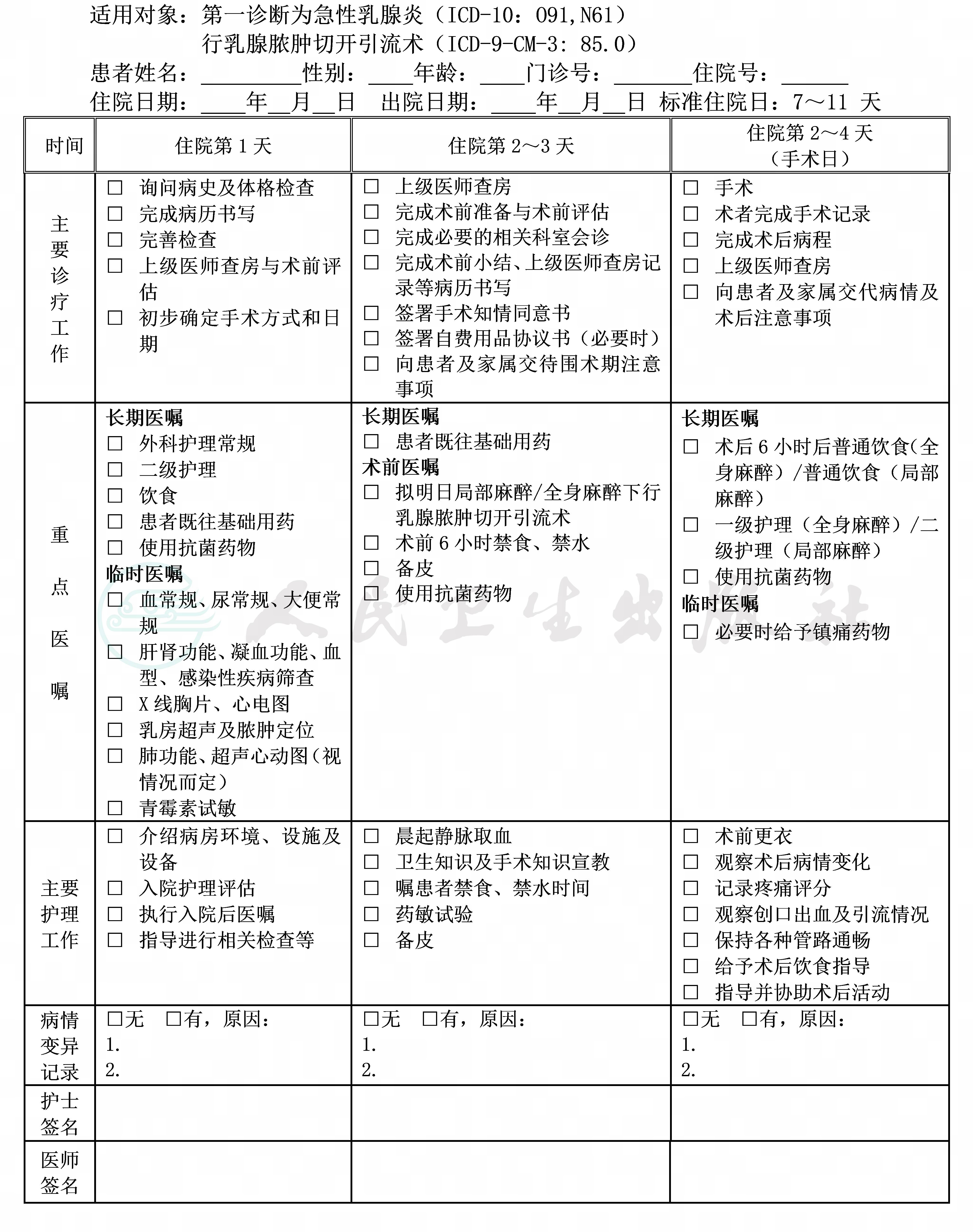 二、急性乳腺炎临床路径表单