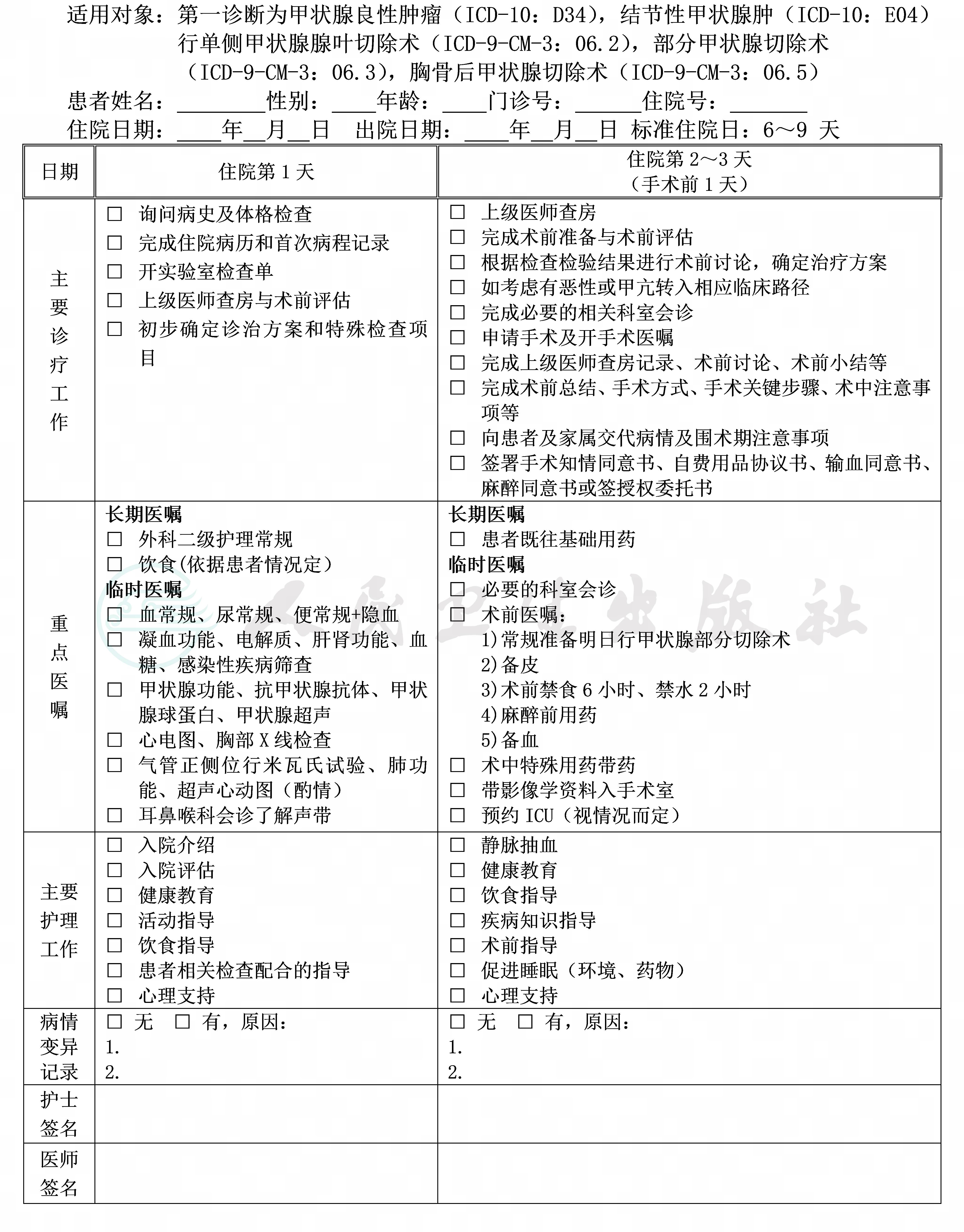 一、甲状腺良性肿瘤临床路径标准住院流程