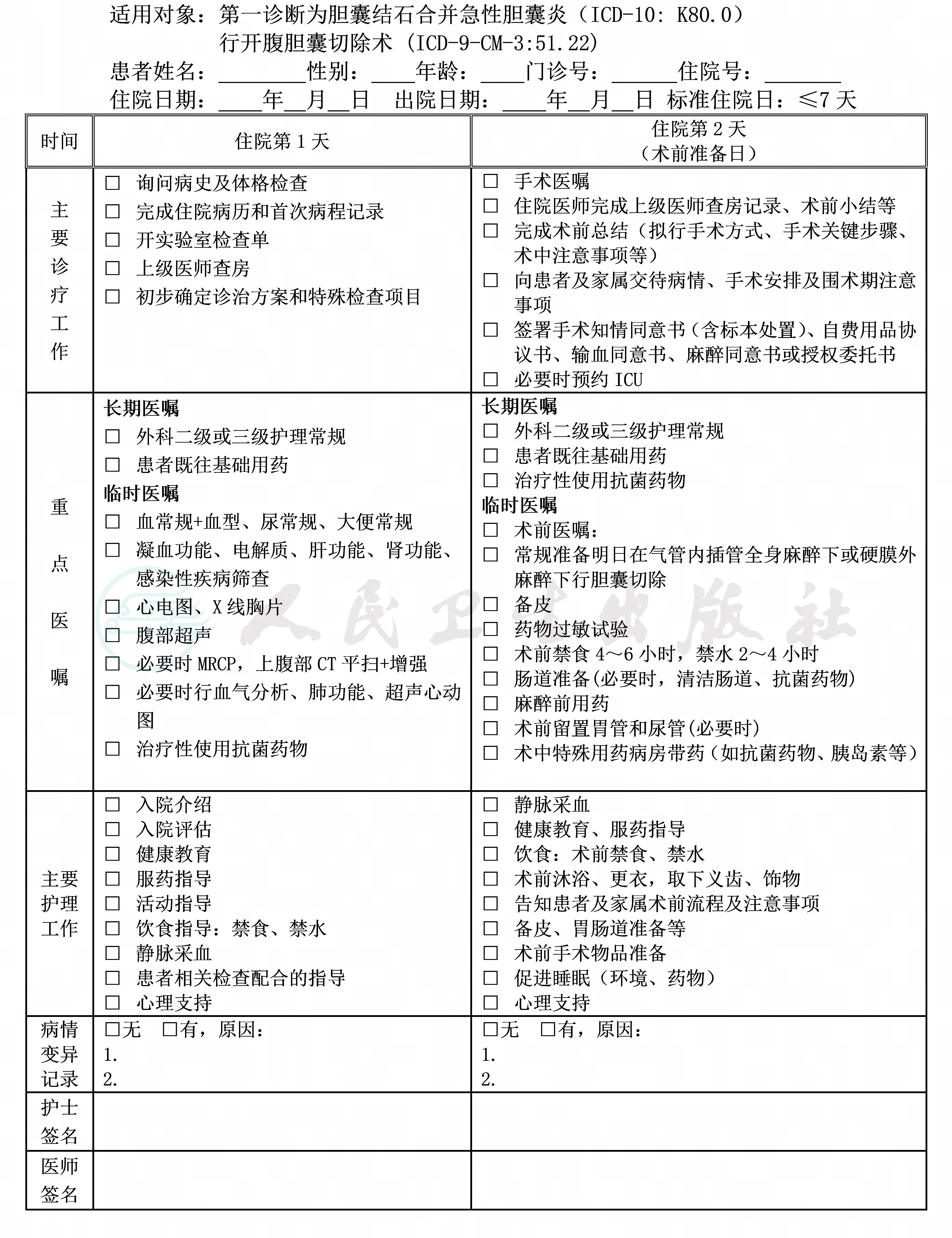 二、胆囊结石合并急性胆囊炎临床路径表单