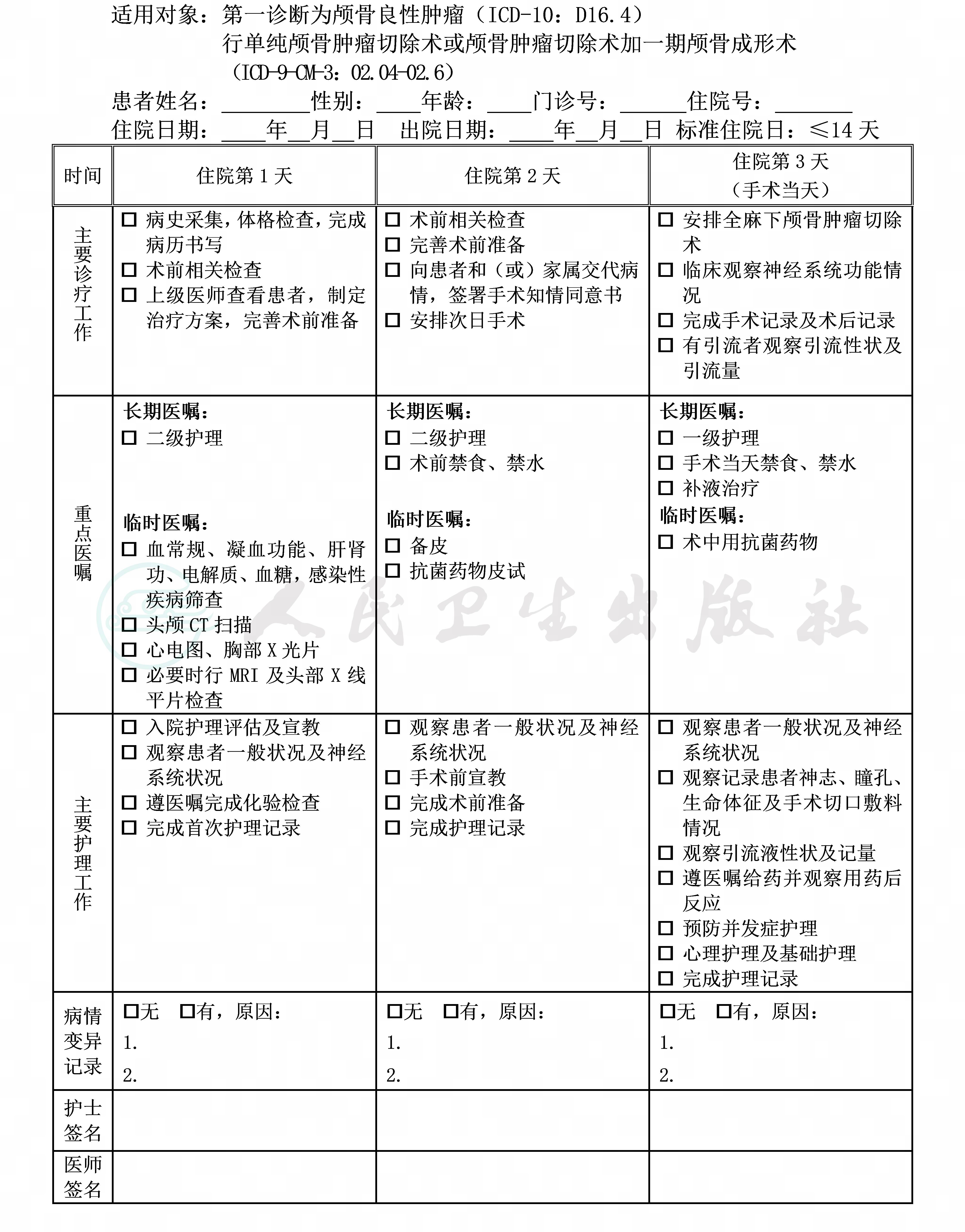 第一诊断为颅骨良性肿瘤(ICD-10:D16.4),行单纯颅骨肿瘤切除术或颅骨肿瘤切除术加一期颅骨成形术(ICD-9-CM-3:02.04-02.6)。