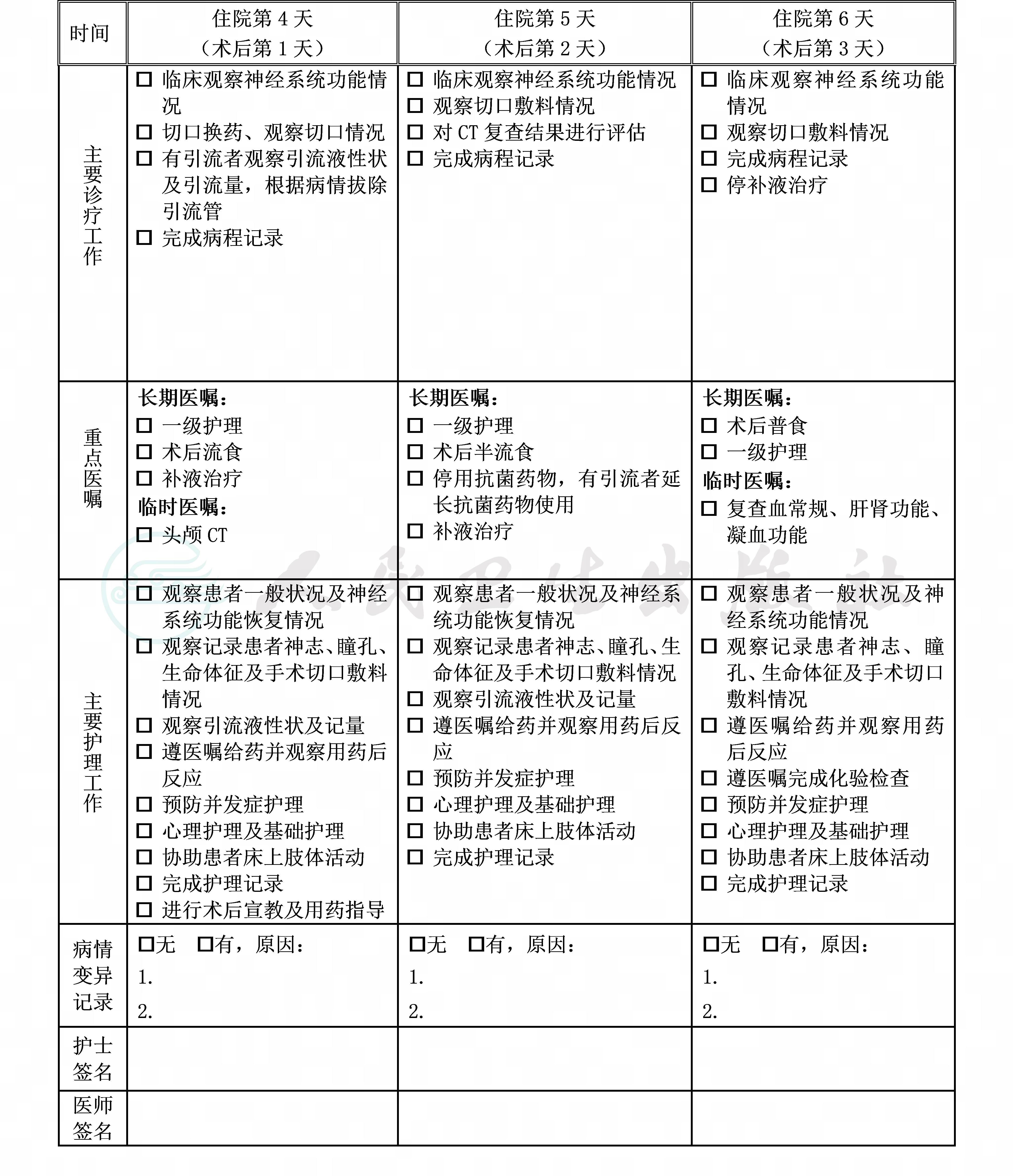 3.术后用药:抗菌药物、脱水药、激素,根据病情可用抗癫痫药等。
