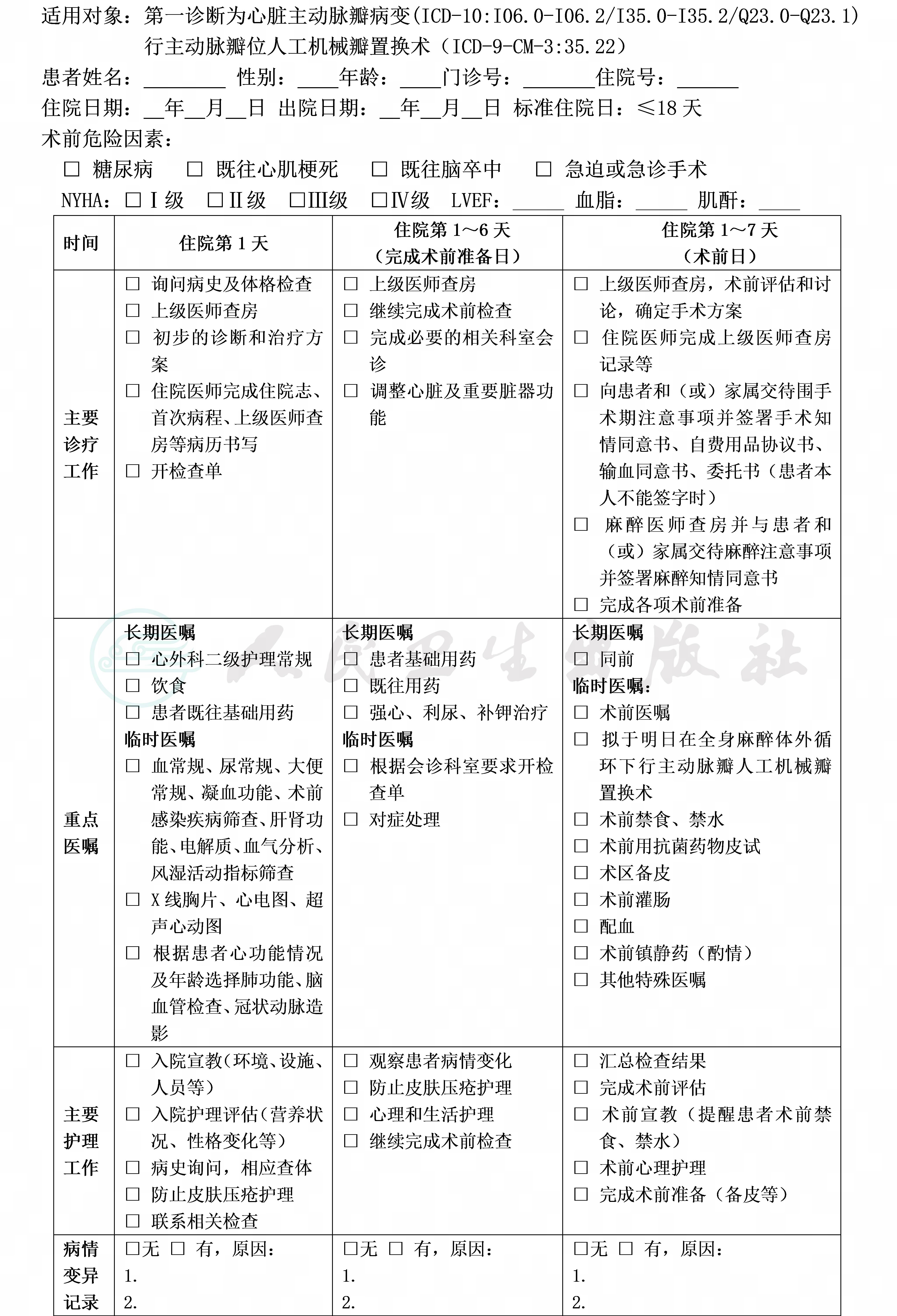 二、主动脉瓣病变人工机械瓣置换术临床路径表单