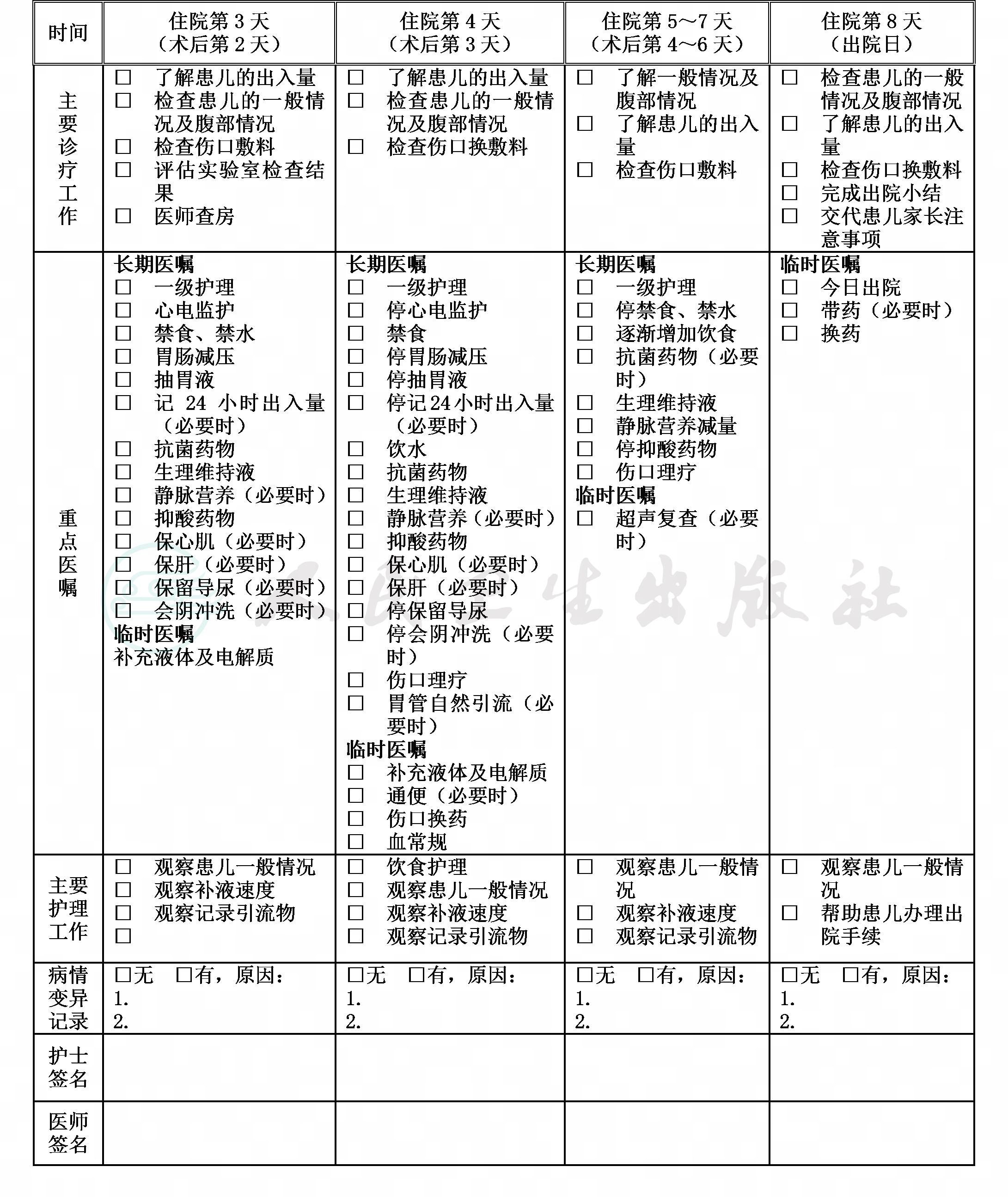 2.术后用药:抗菌治疗,按照《抗菌药物临床应用指导原则》(卫医发〔2015〕43号)执行,根据患儿病情合理使用抗菌药物。