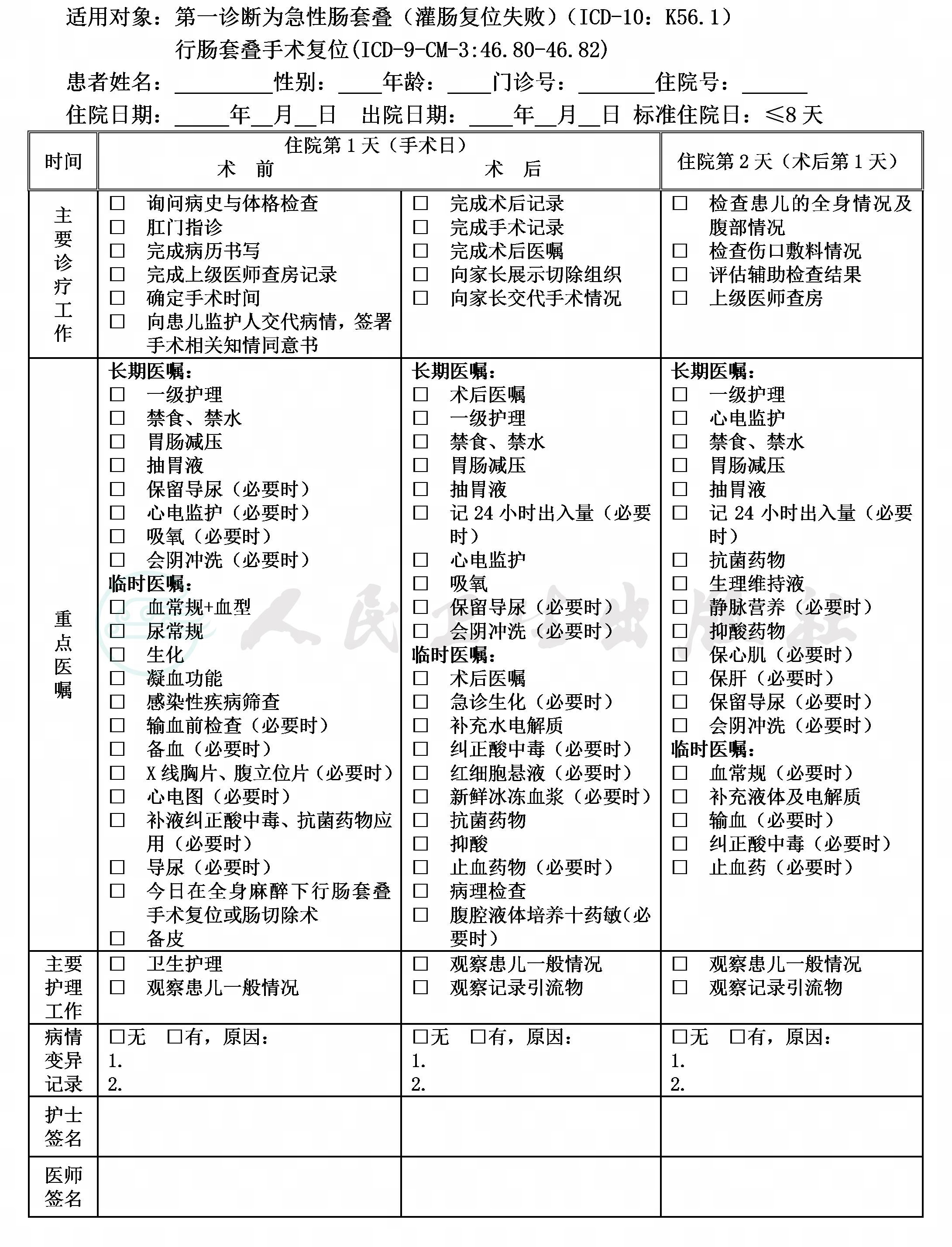 1.第一诊断必须符合ICD-10:K56.1急性肠套叠(灌肠复位失败)疾病编码。
