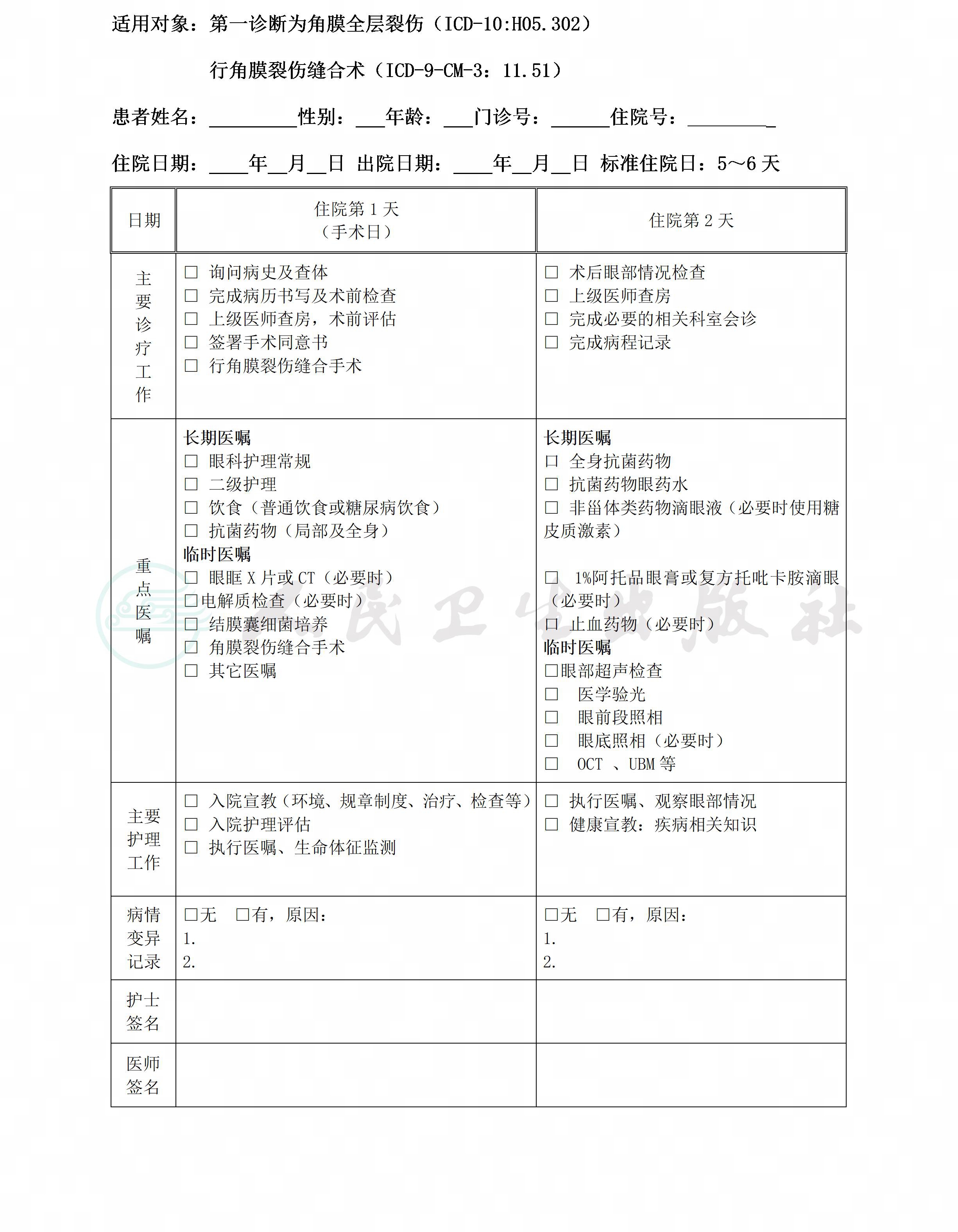 1.第一诊断符合ICD-10:H05.302角膜全层裂伤疾病编码。