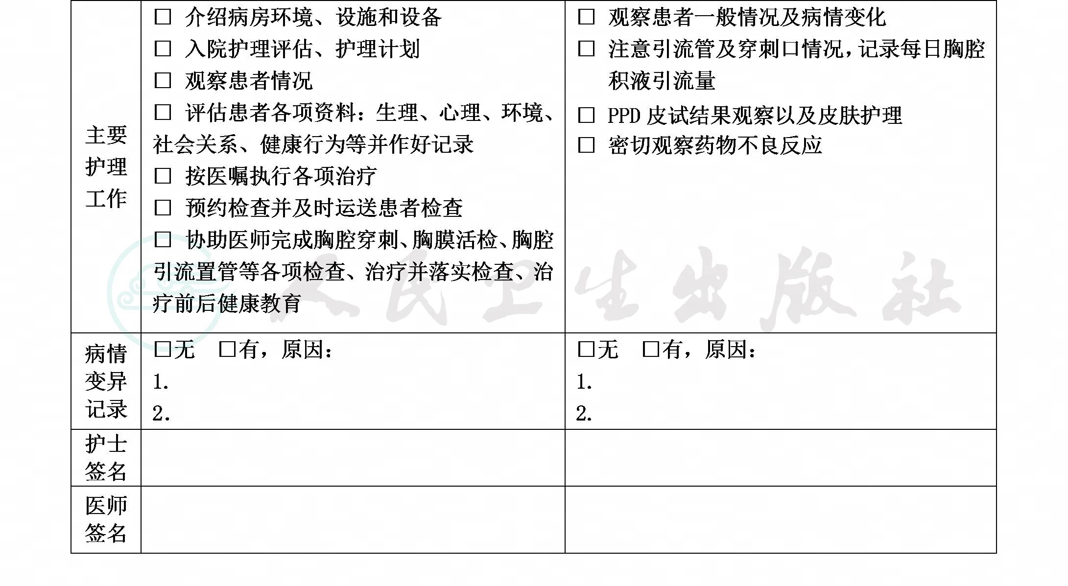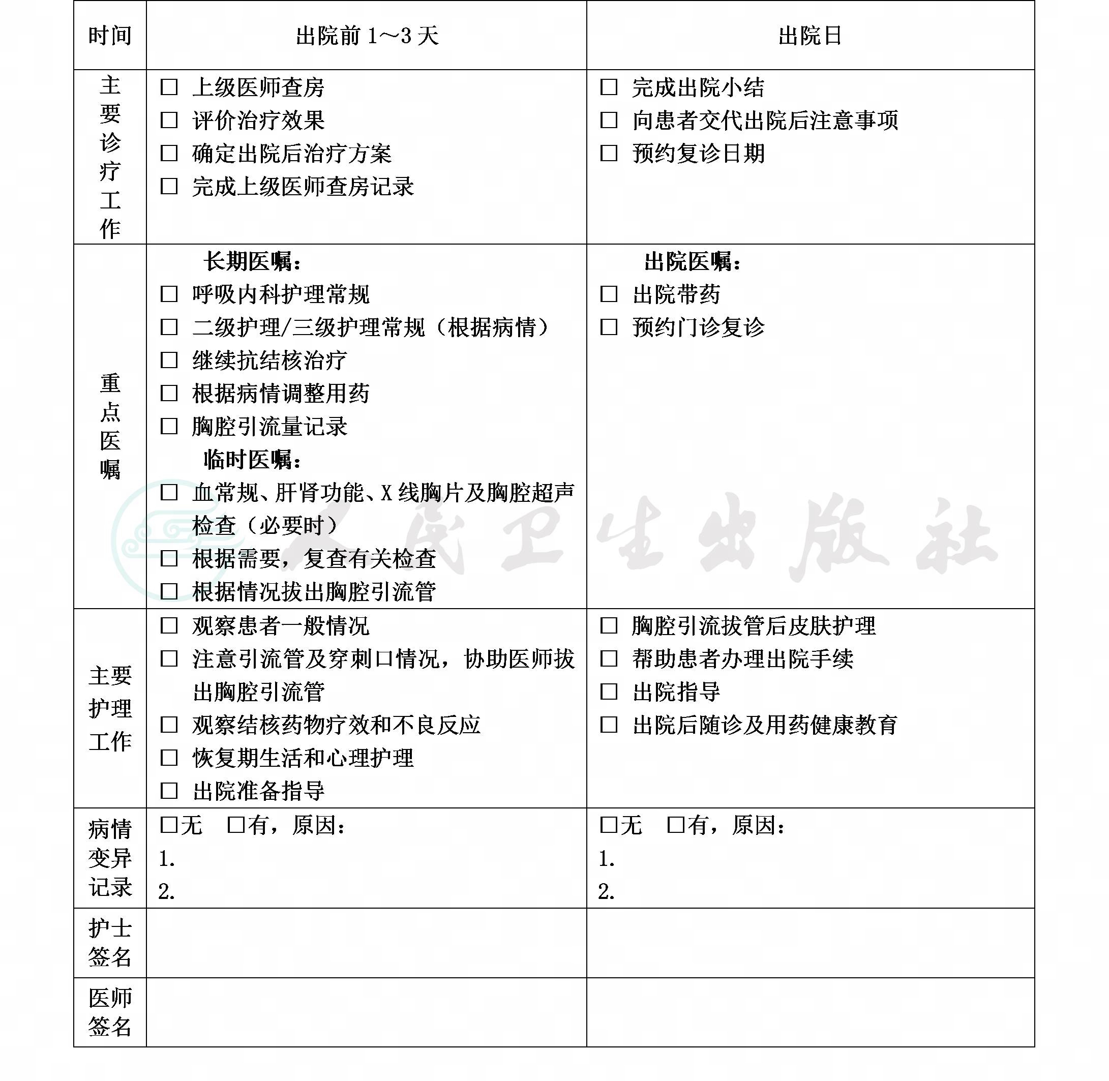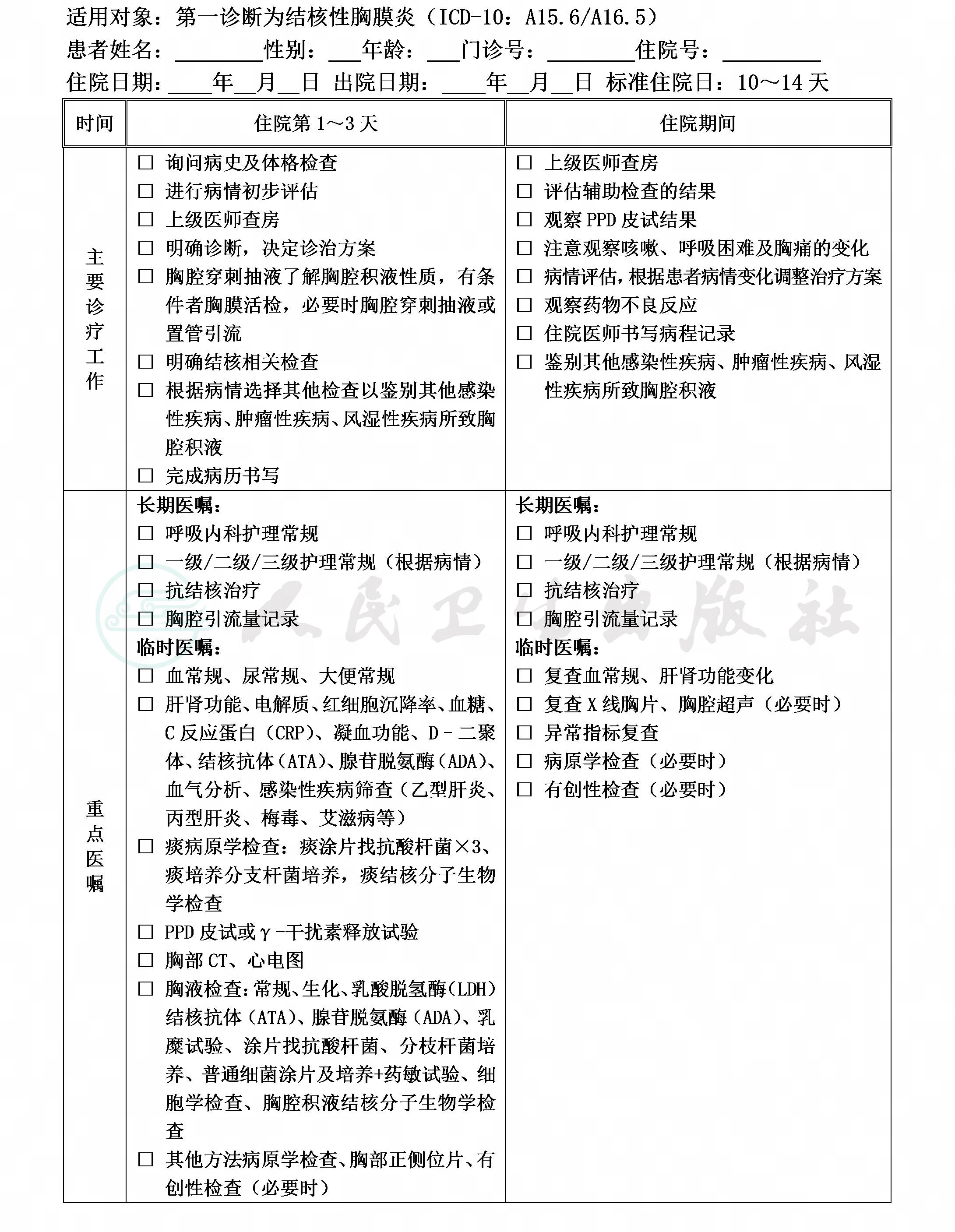 二、结核性胸膜炎临床路径表单