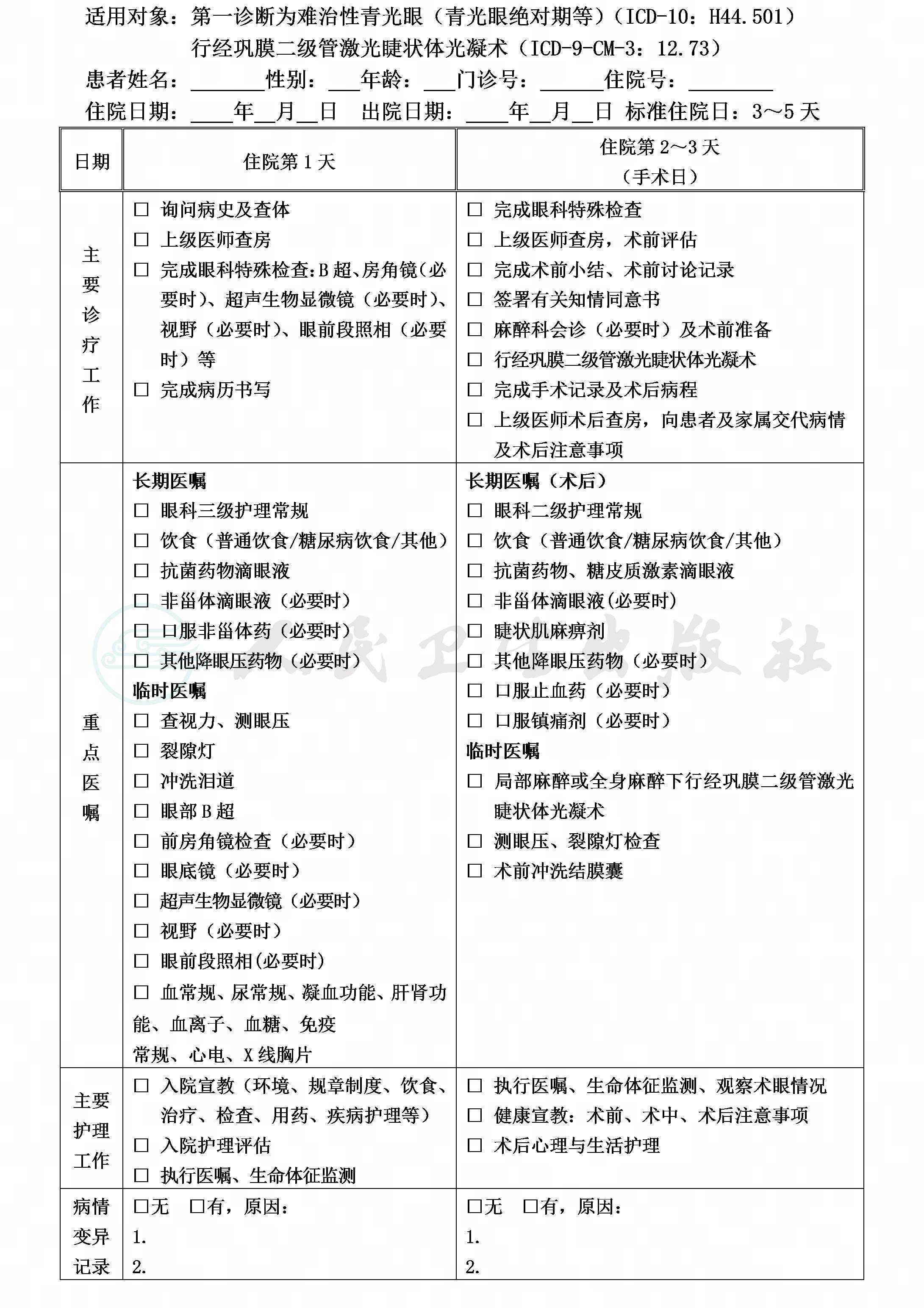 二、经巩膜二级管激光睫状体光凝术临床路径表单