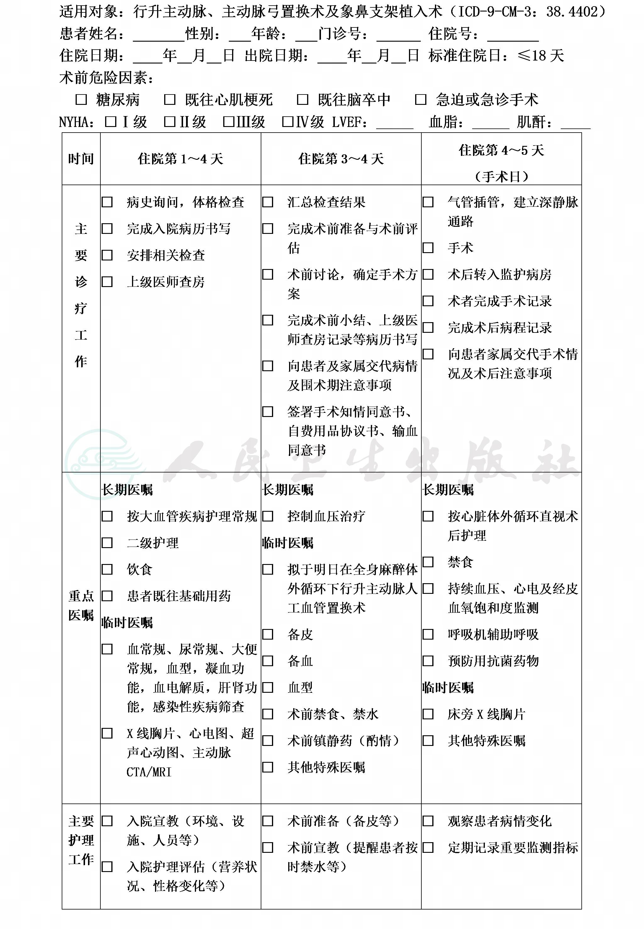 二、升主动脉、主动脉弓置换术及象鼻支架植入术临床路径表单