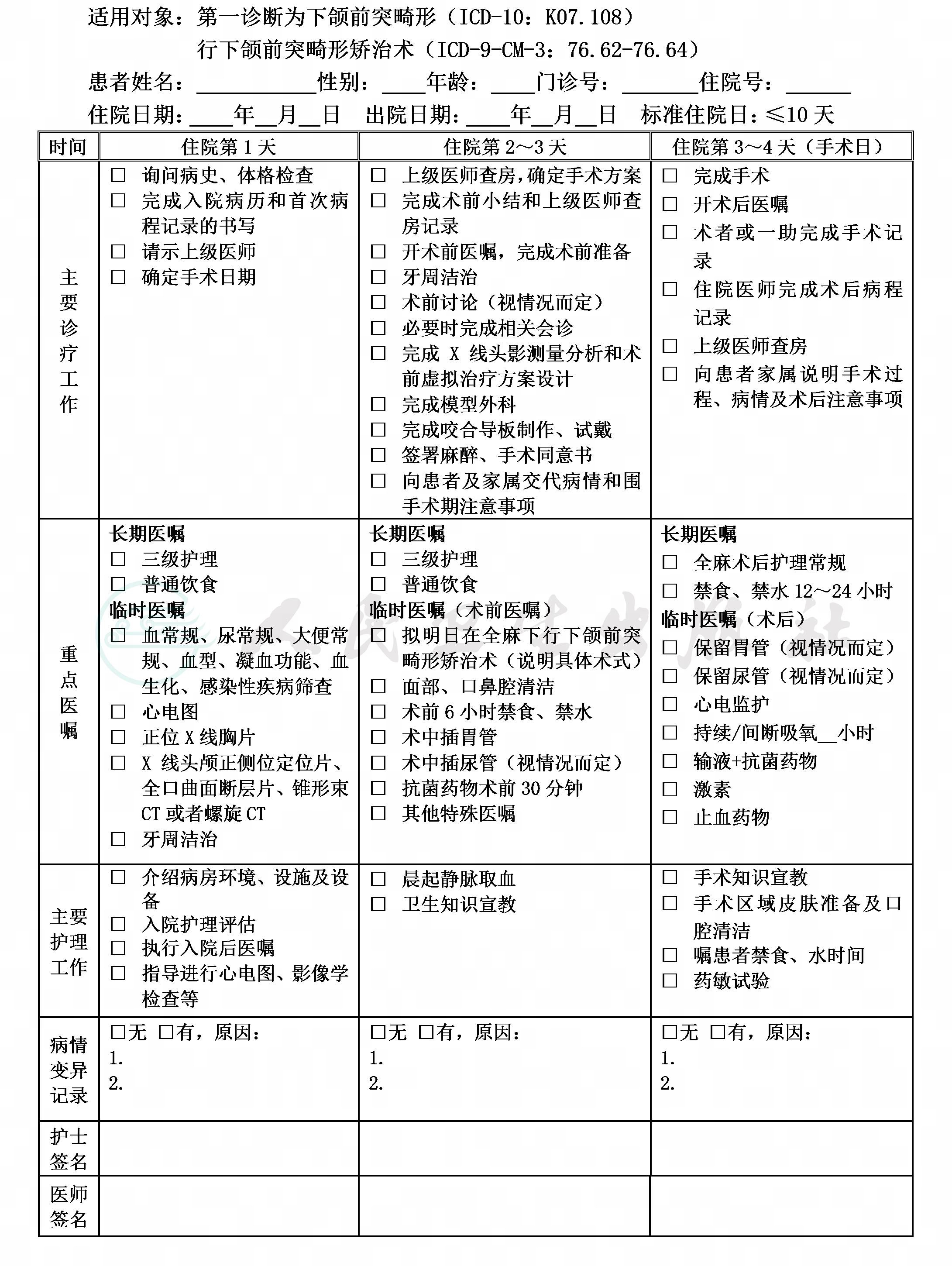 1.第一诊断必须符合ICD-10:K07.108下颌前突畸形疾病编码。