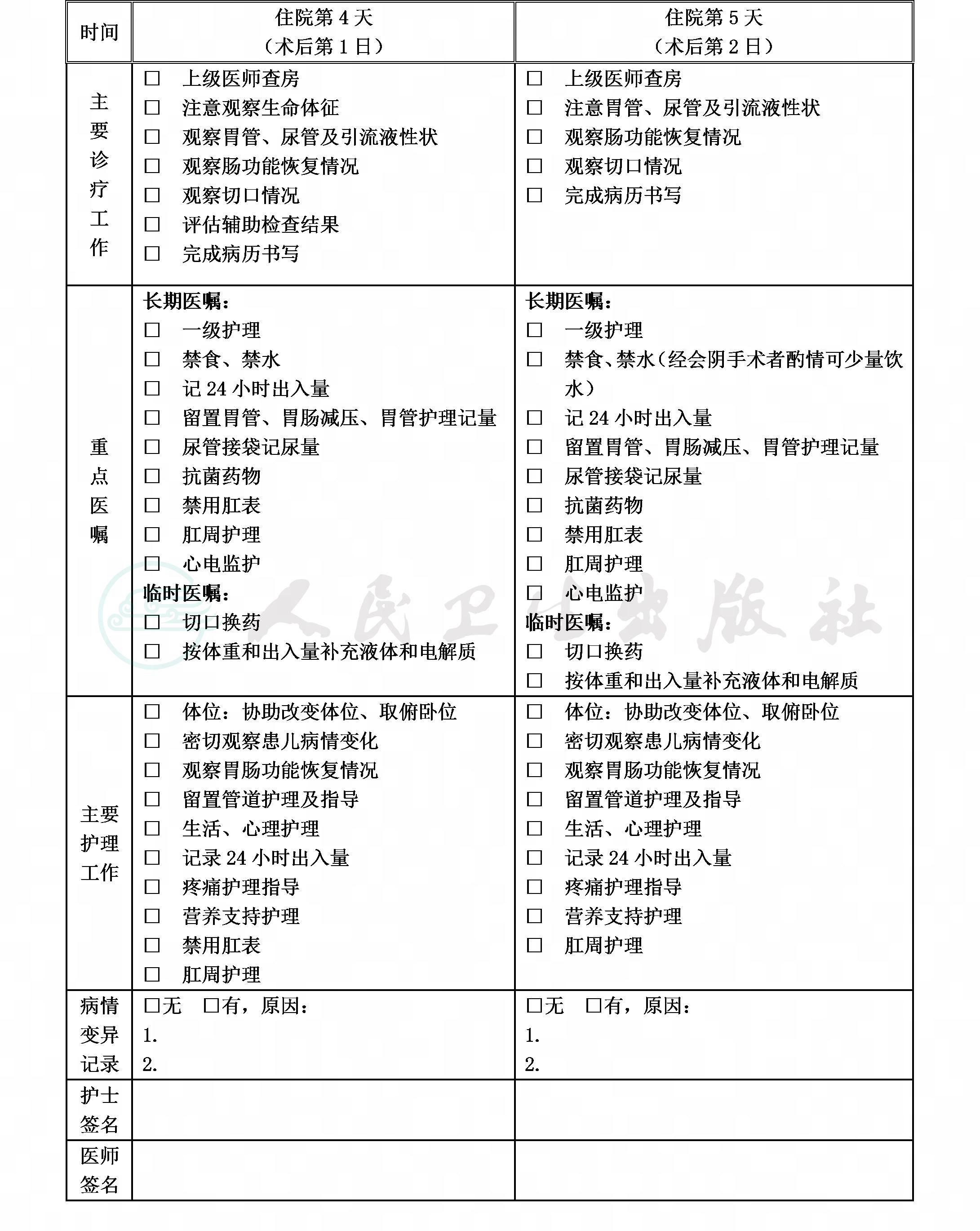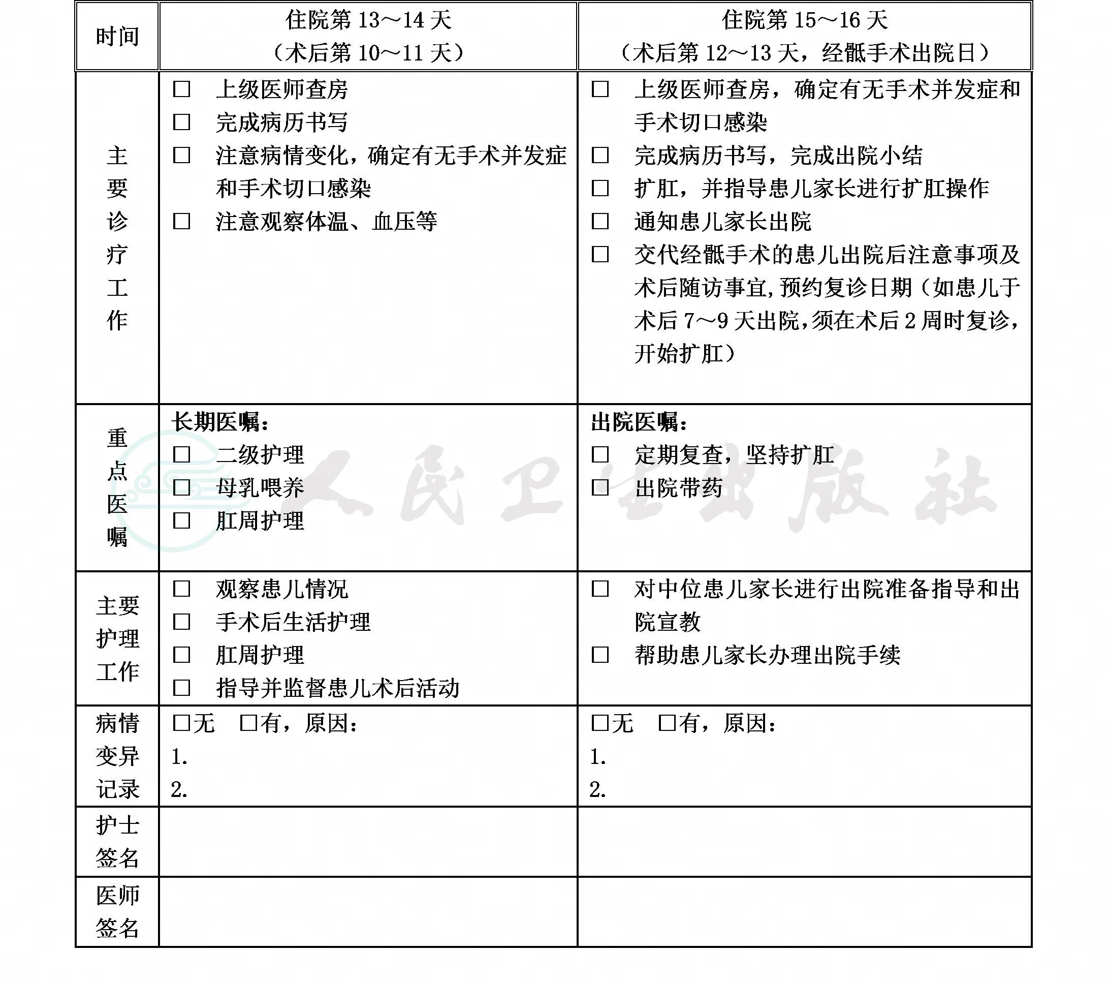(四)标准住院日为10~16天(经会阴手术10天,经骶手术16天)