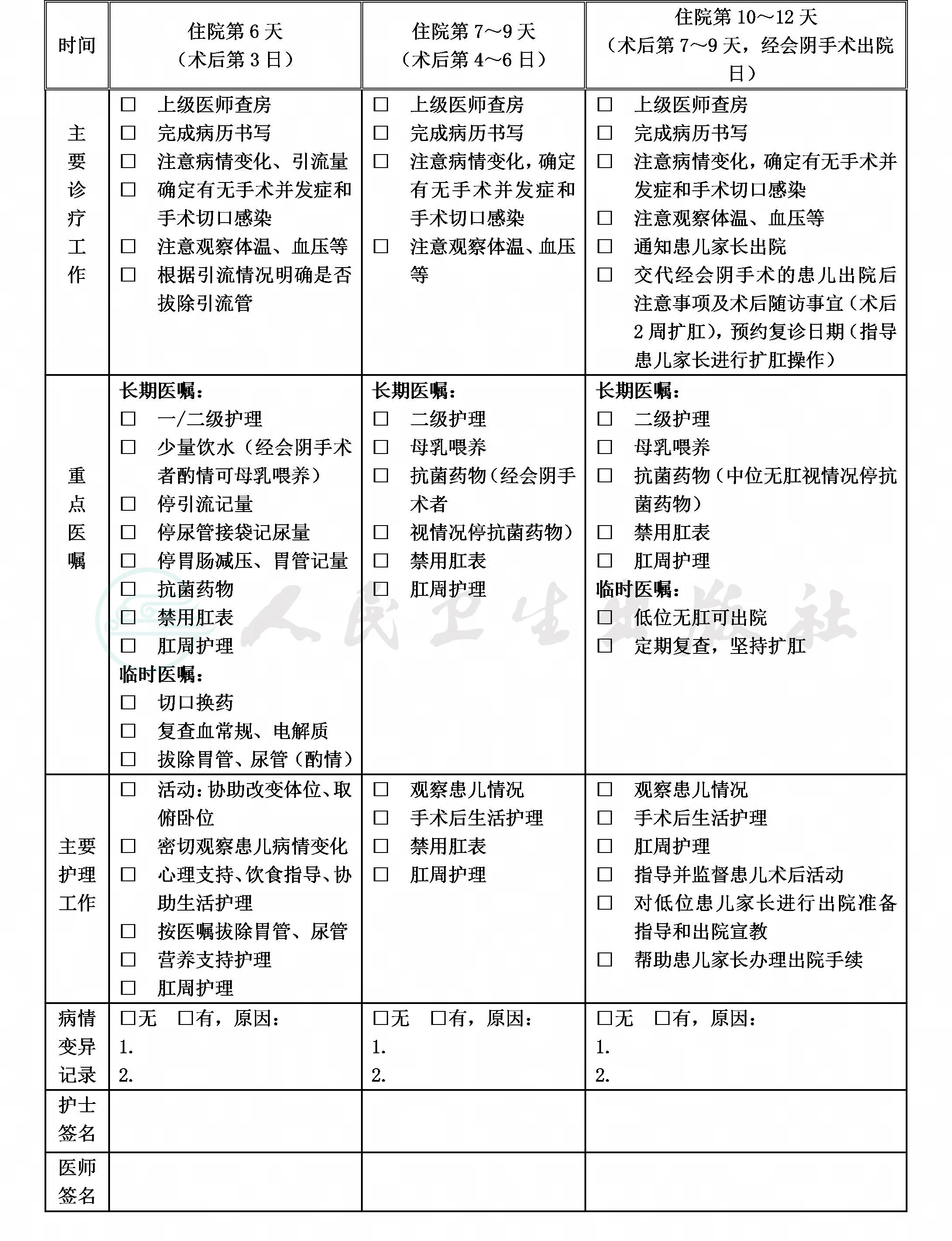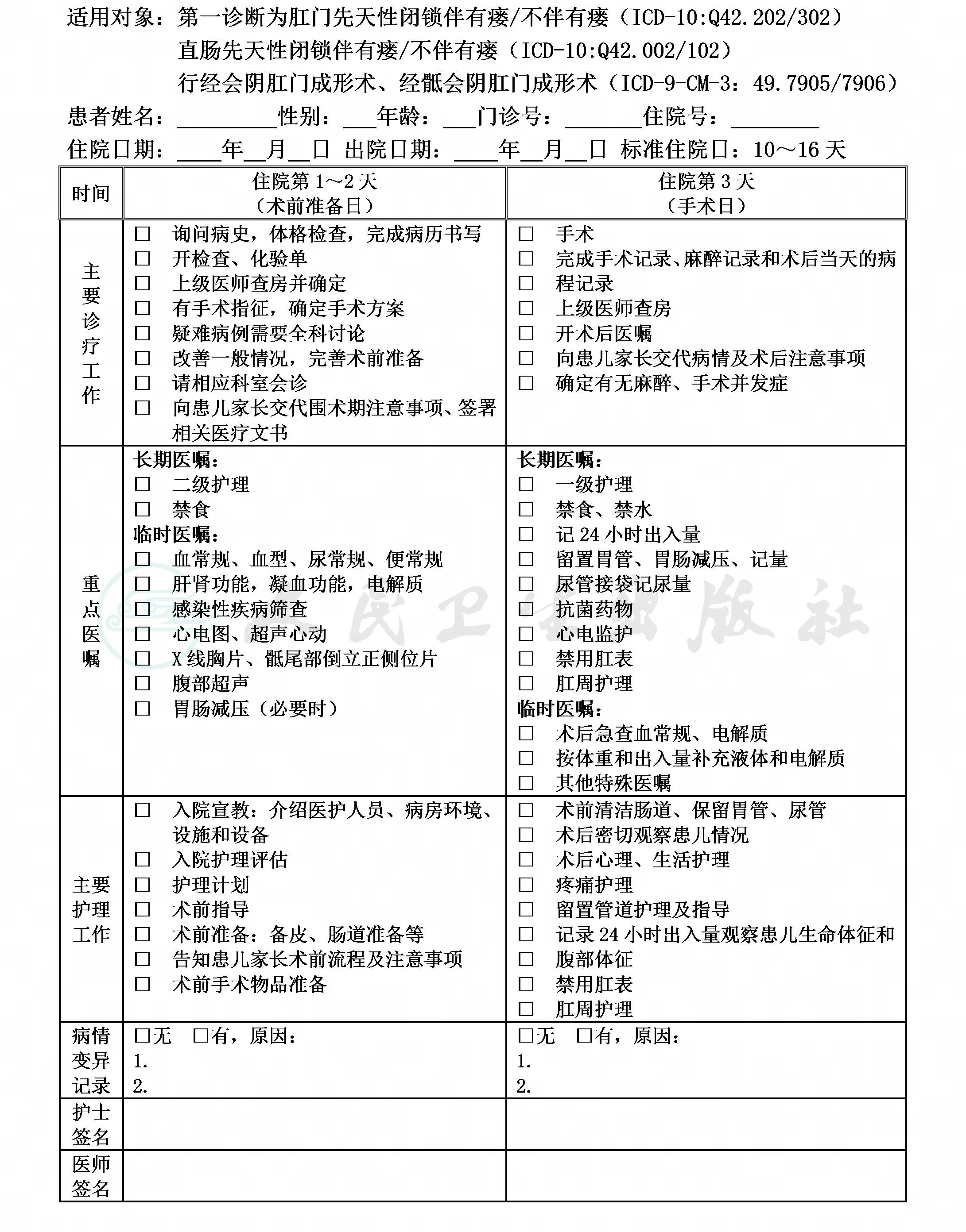 二、先天性肛门直肠畸形(中低位)临床路径表单