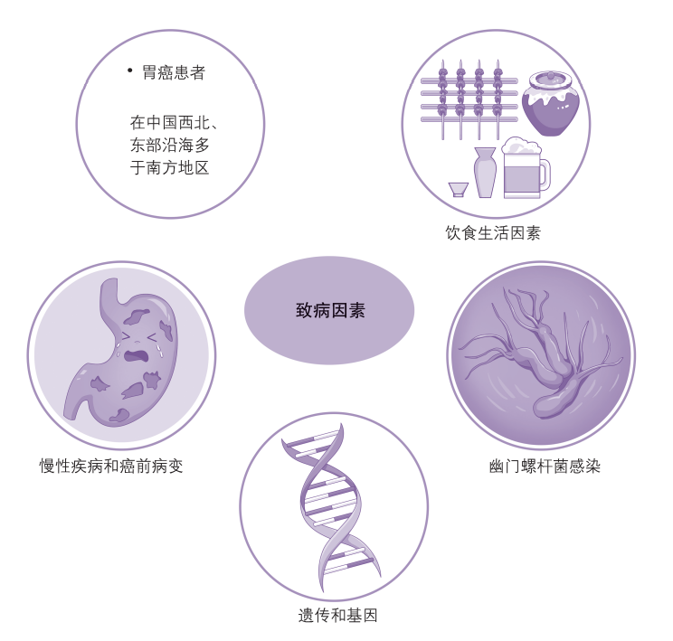 胃癌的病因尚未完全清楚,但与以下因素有关: