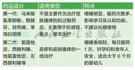 目前治疗瘙痒的常用口服药为抗过敏药,在瘙痒明显或伴有睡眠障碍、荨麻疹等症状时,我们可以口服该类药品治疗。但是市面上的抗过敏药较多,到底哪种更适合于皮肤瘙痒的治疗?我们用表格来给您做个总结: