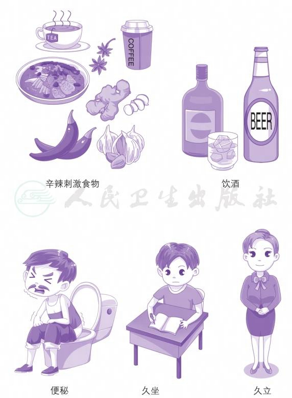 痔疮诱发因素很多,其中便秘、饮酒、食用辛辣刺激食物、久坐久立是主要原因。