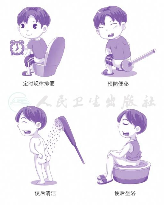 养成定时排便习惯,排便后可用温水清洗肛门,坐浴,热敷。
