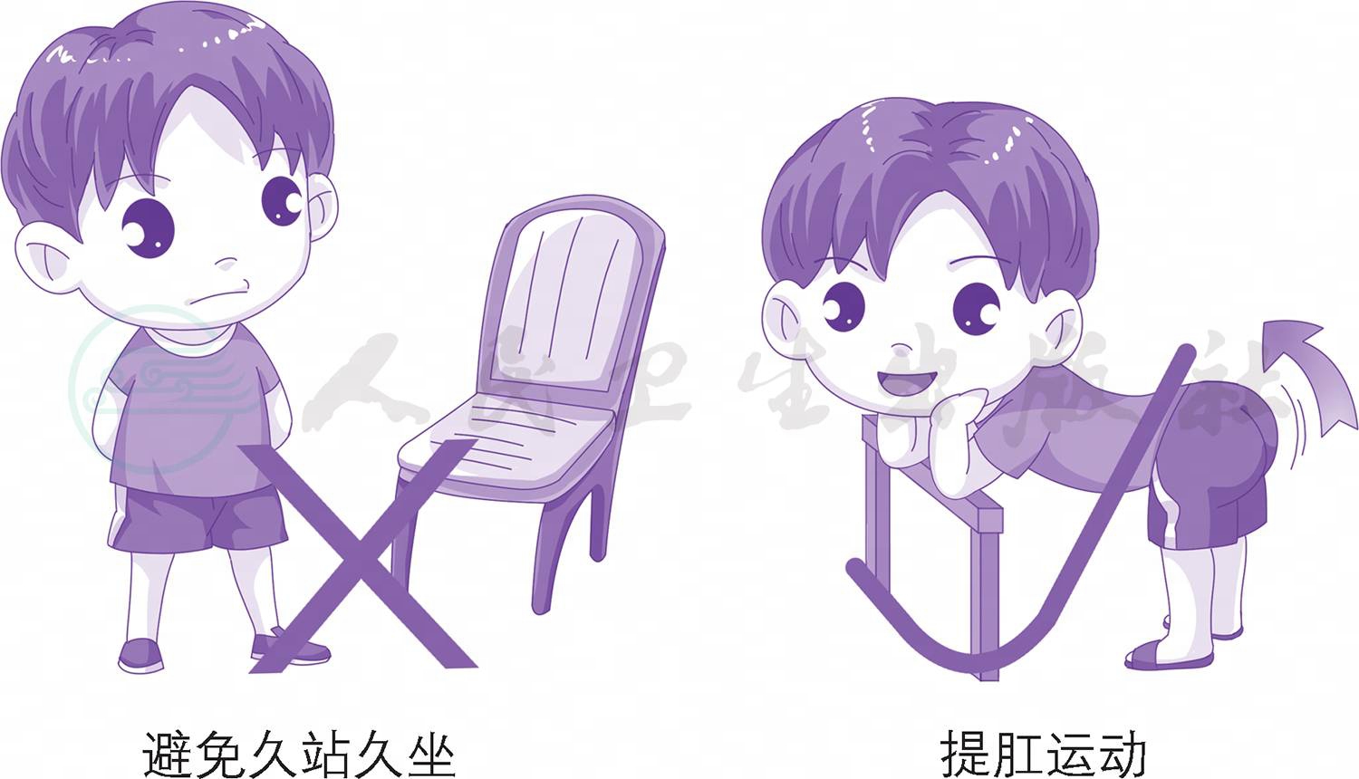 避免久坐久站,适当做些运动,实在没时间运动,可以每天早晚做两组提肛运动,即主动收缩肛门,每组30~40次,对预防和治疗痔疮都很有帮助。