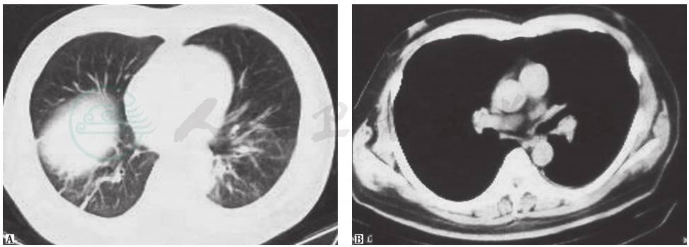 肺结核:病变部位多分布于肺尖和下叶背段,可见浸润渗出、纤维硬结和空洞坏死性病灶,但咯血多见于未经治疗病程较长的结核病患者,也常见于结核病灶好转后继发支气管扩张者。本例患者支气管扩张病变位于下肺,也未见相应结核样病灶,故可排除结核可能。