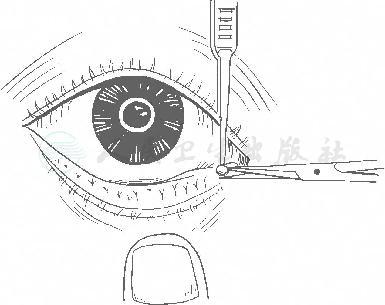 分别从水平,鼻内侧,颞侧三处将泪点剪成三角形开放状态