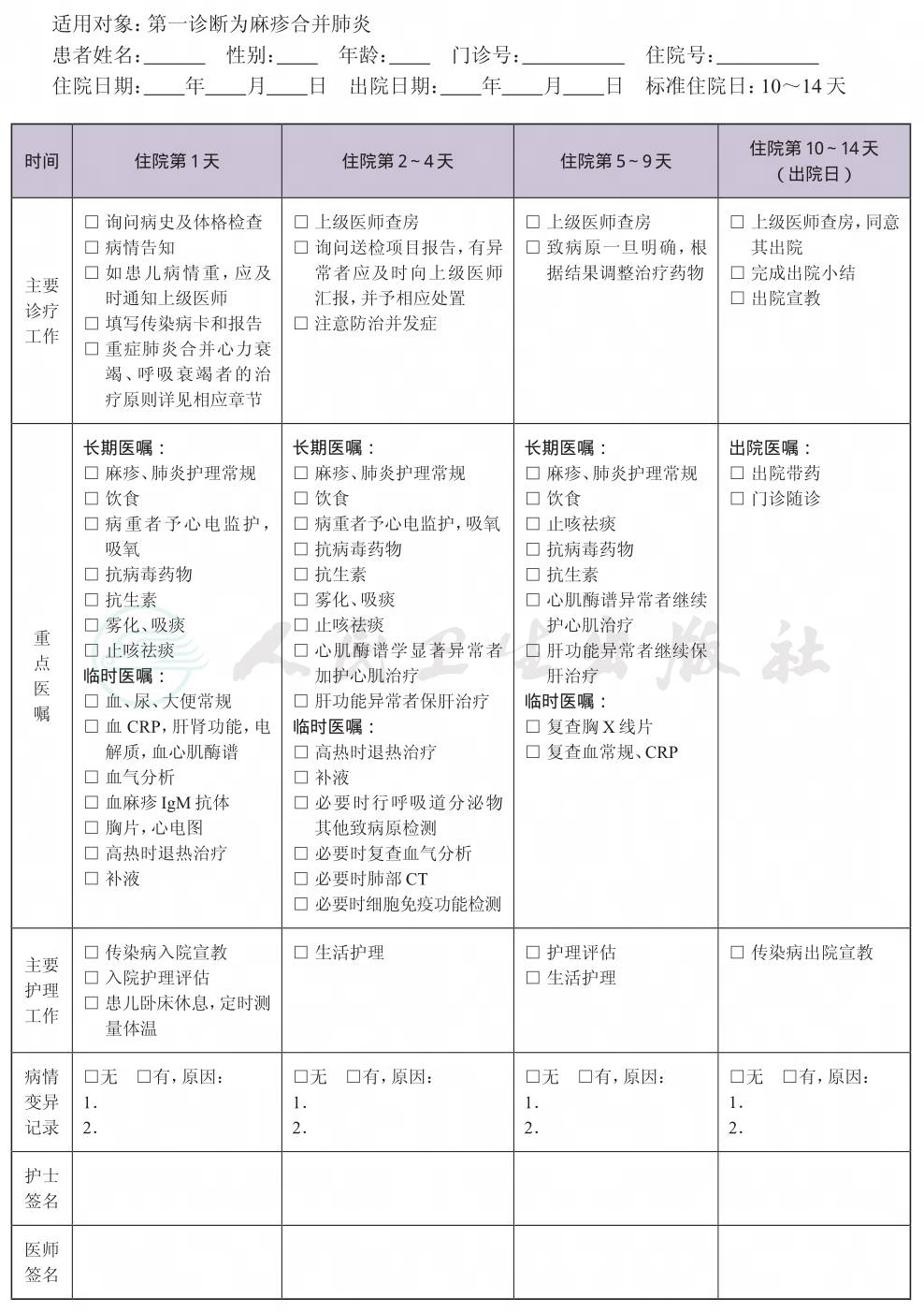 二、 麻疹合并肺炎临床路径表单