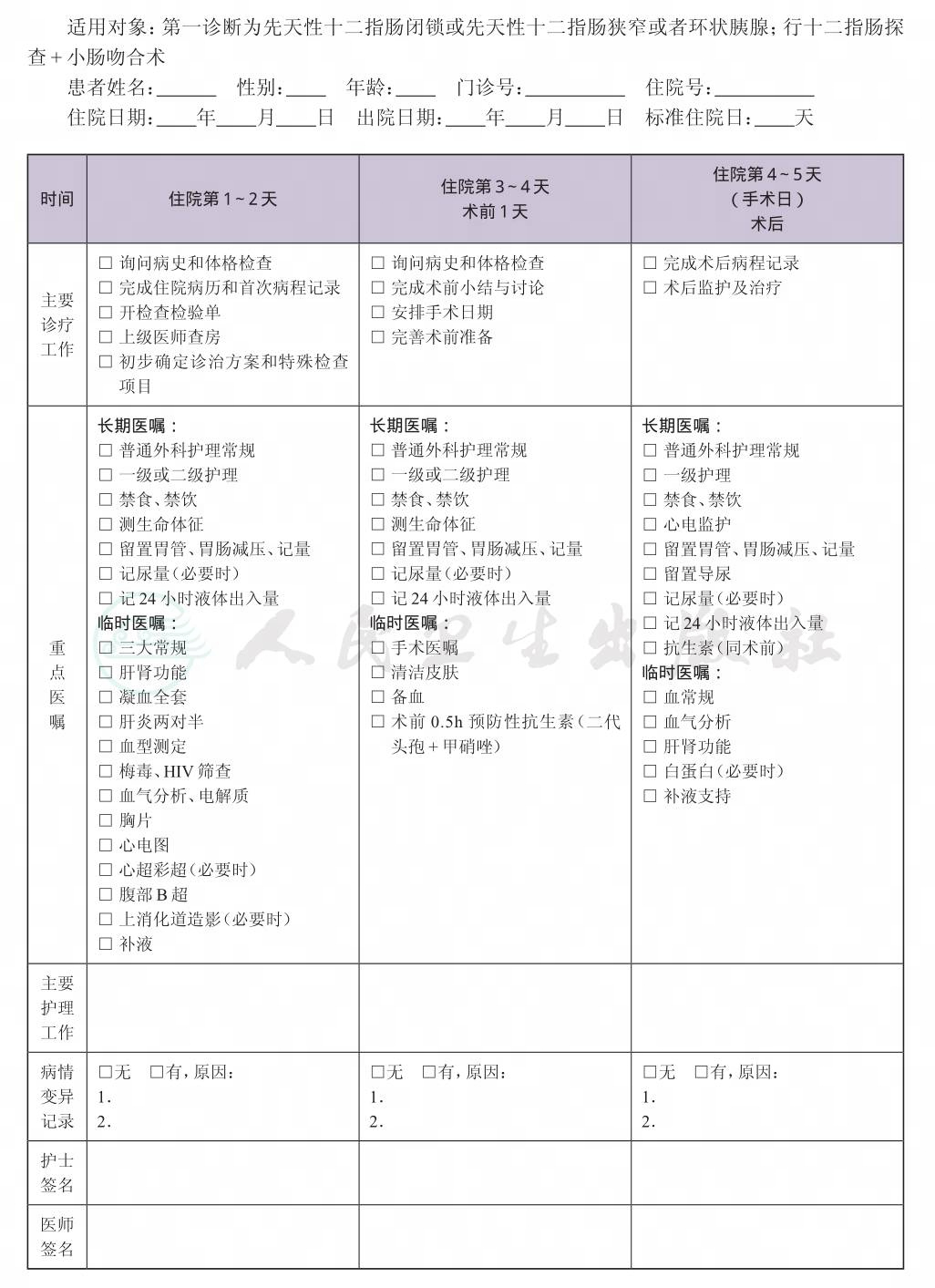 二、 十二指肠闭锁和狭窄临床路径表单