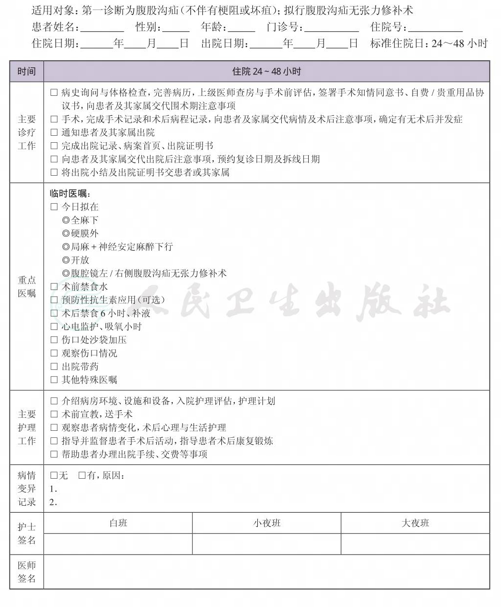 二、 腹股沟疝临床路径表单