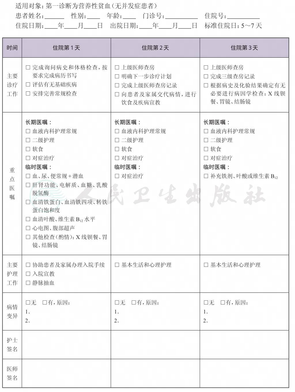 第一诊断为营养性贫血,含缺铁性贫血和巨幼细胞性贫血(无并发症患者)。