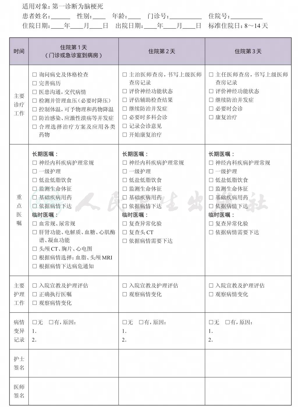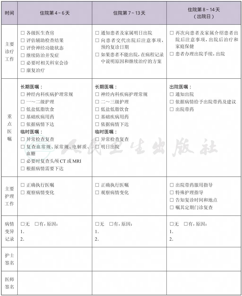 二、 脑梗死临床路径表单