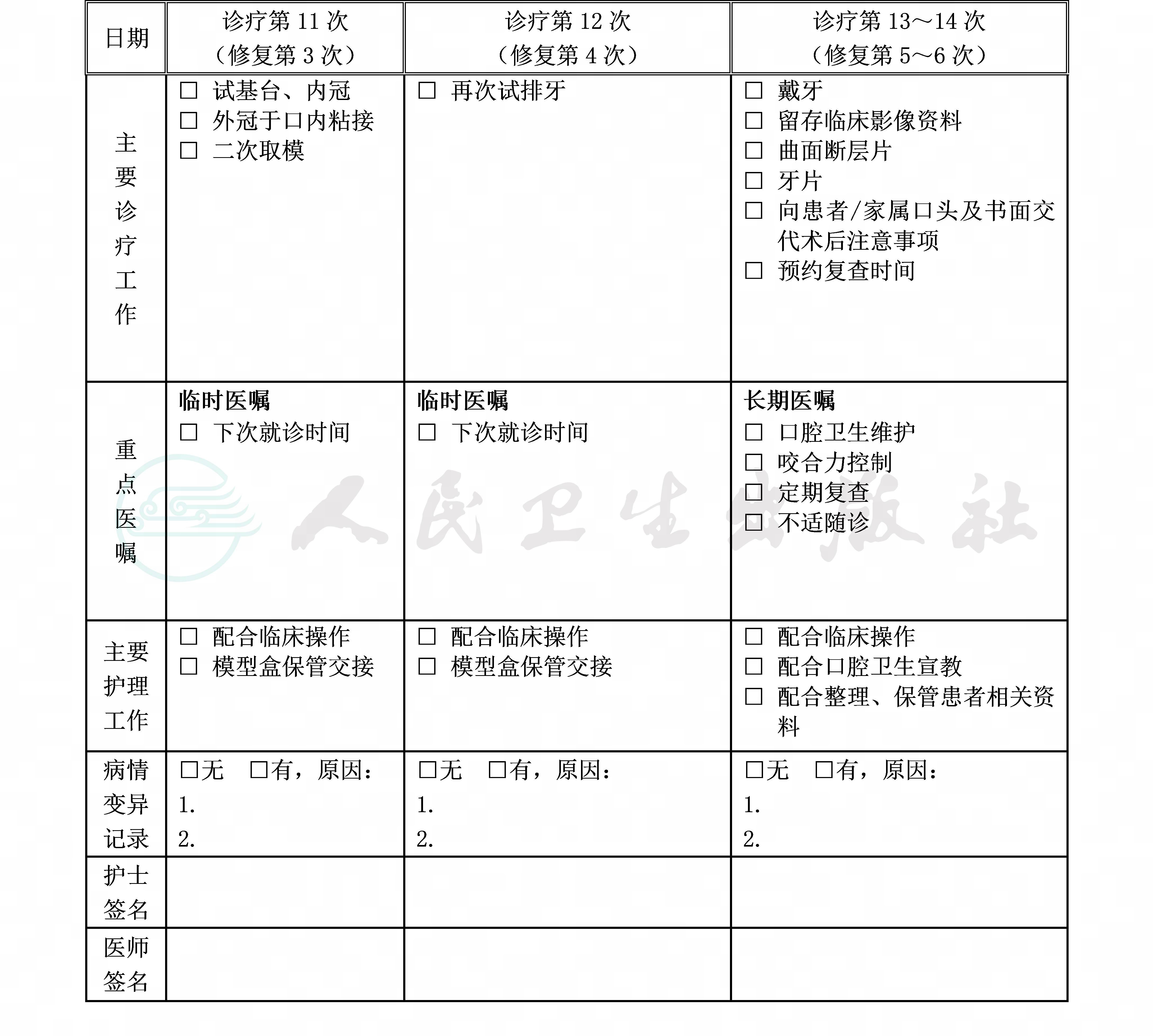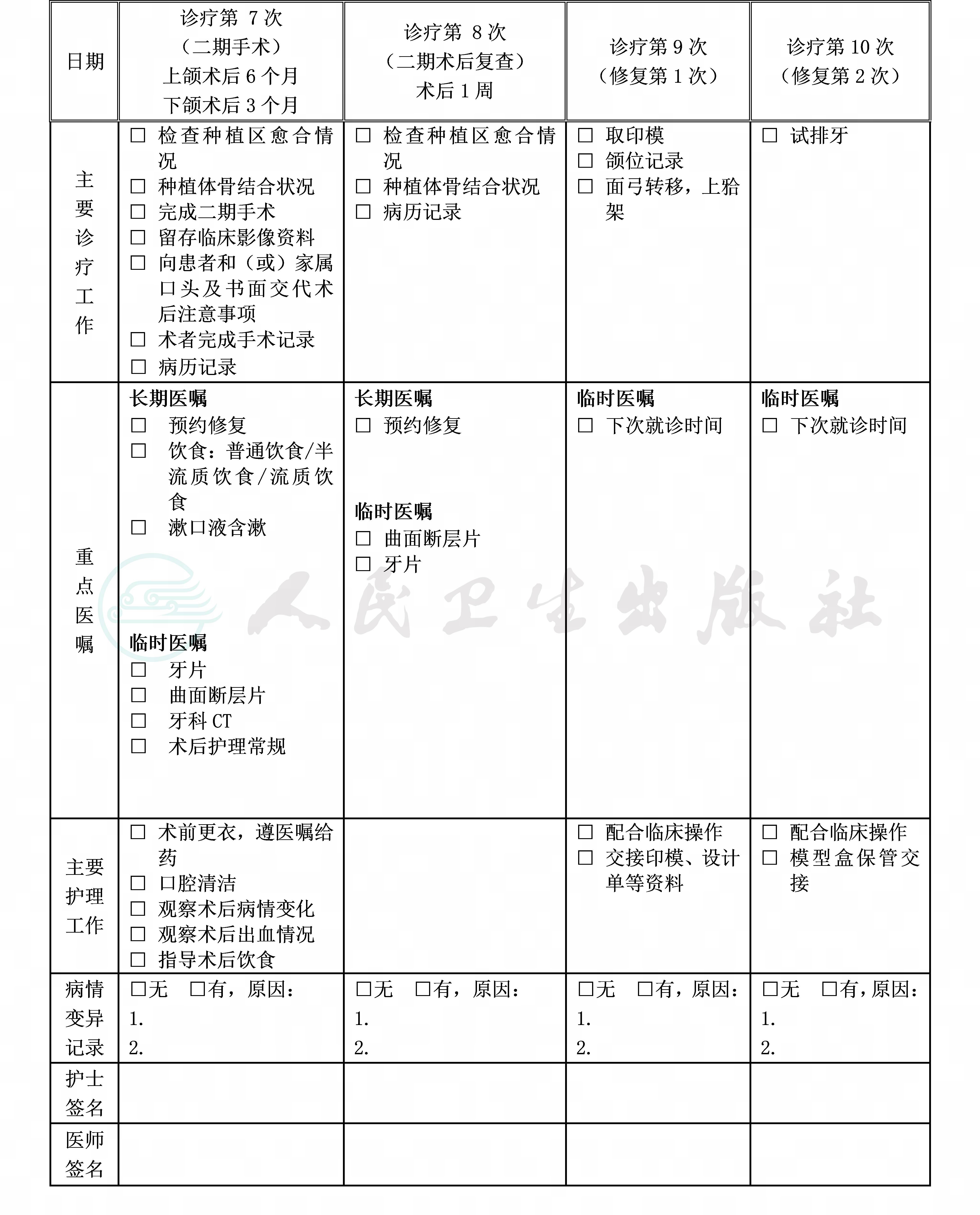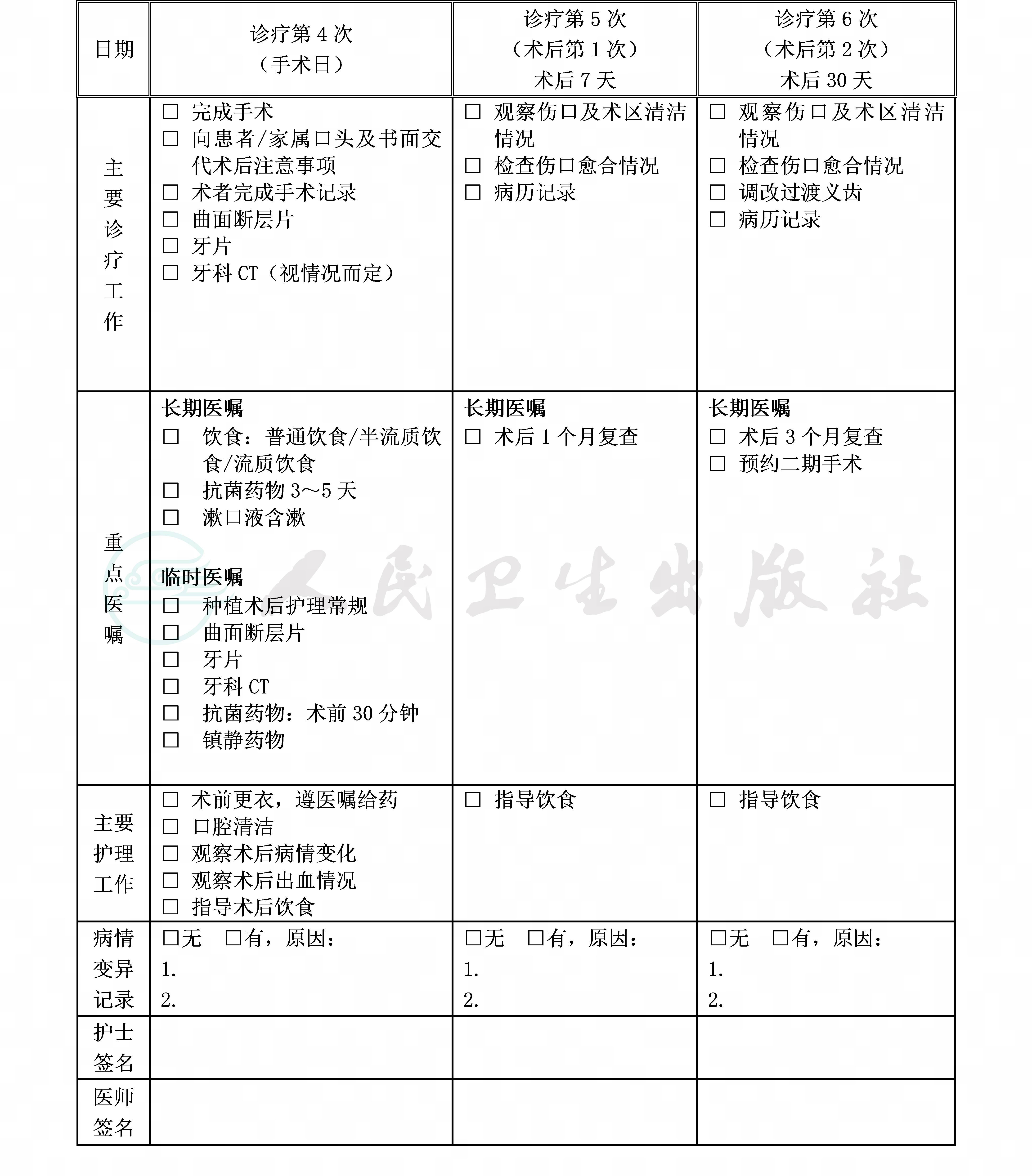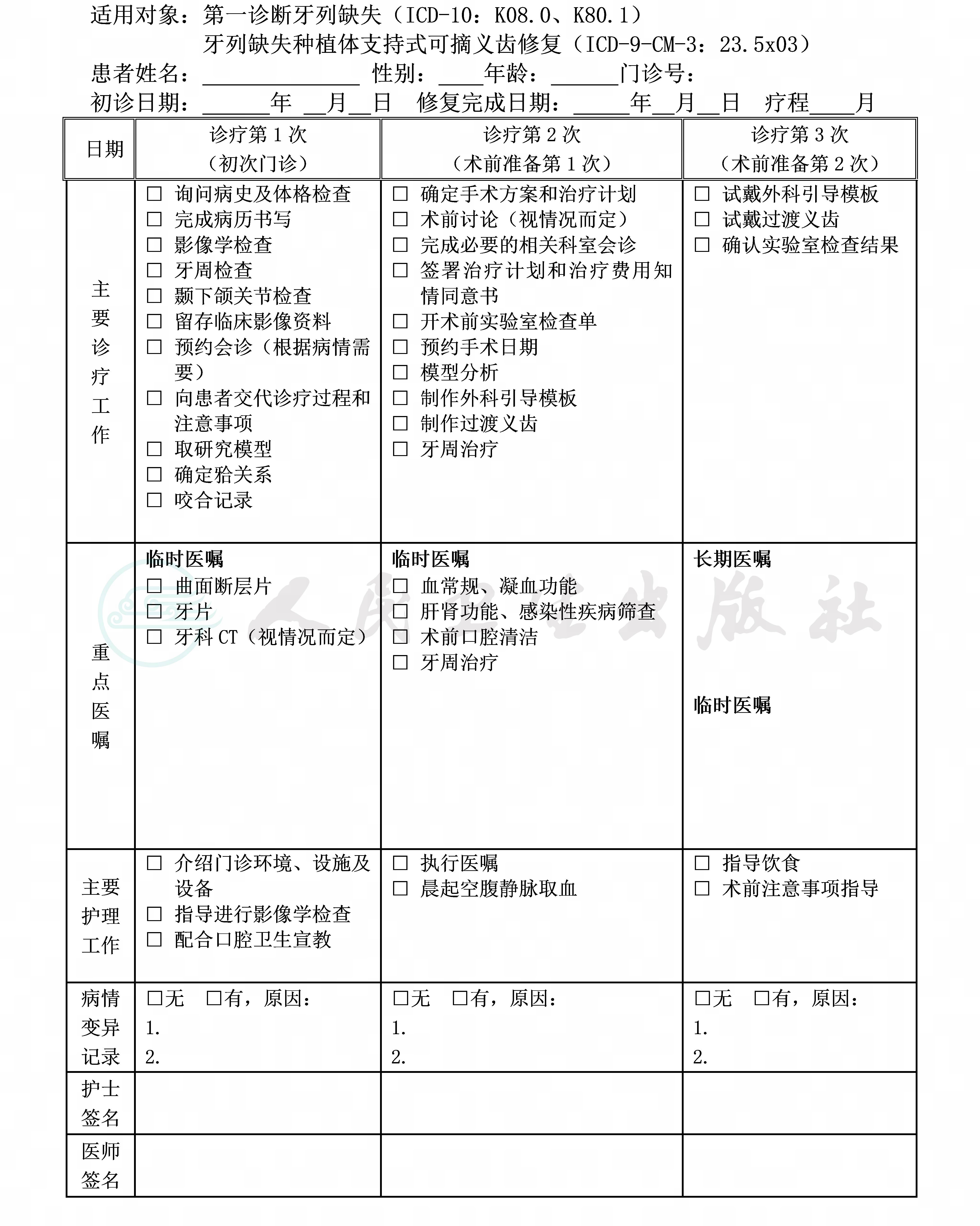 二、牙列缺失行种植体支持式可摘义齿修复临床路径表单